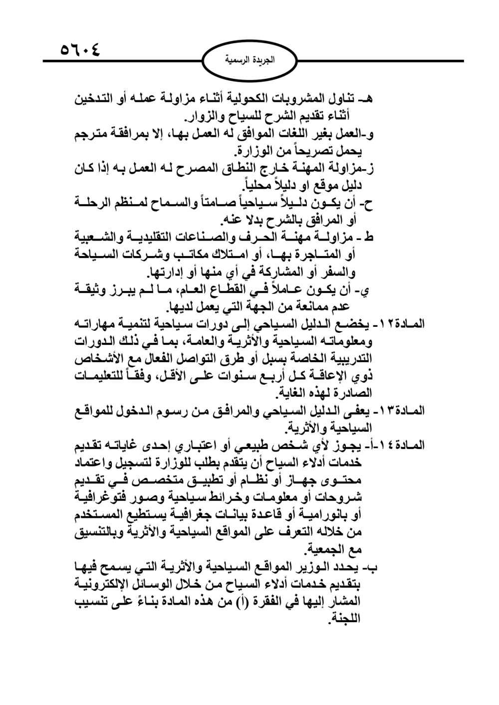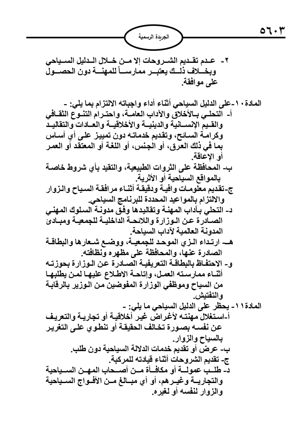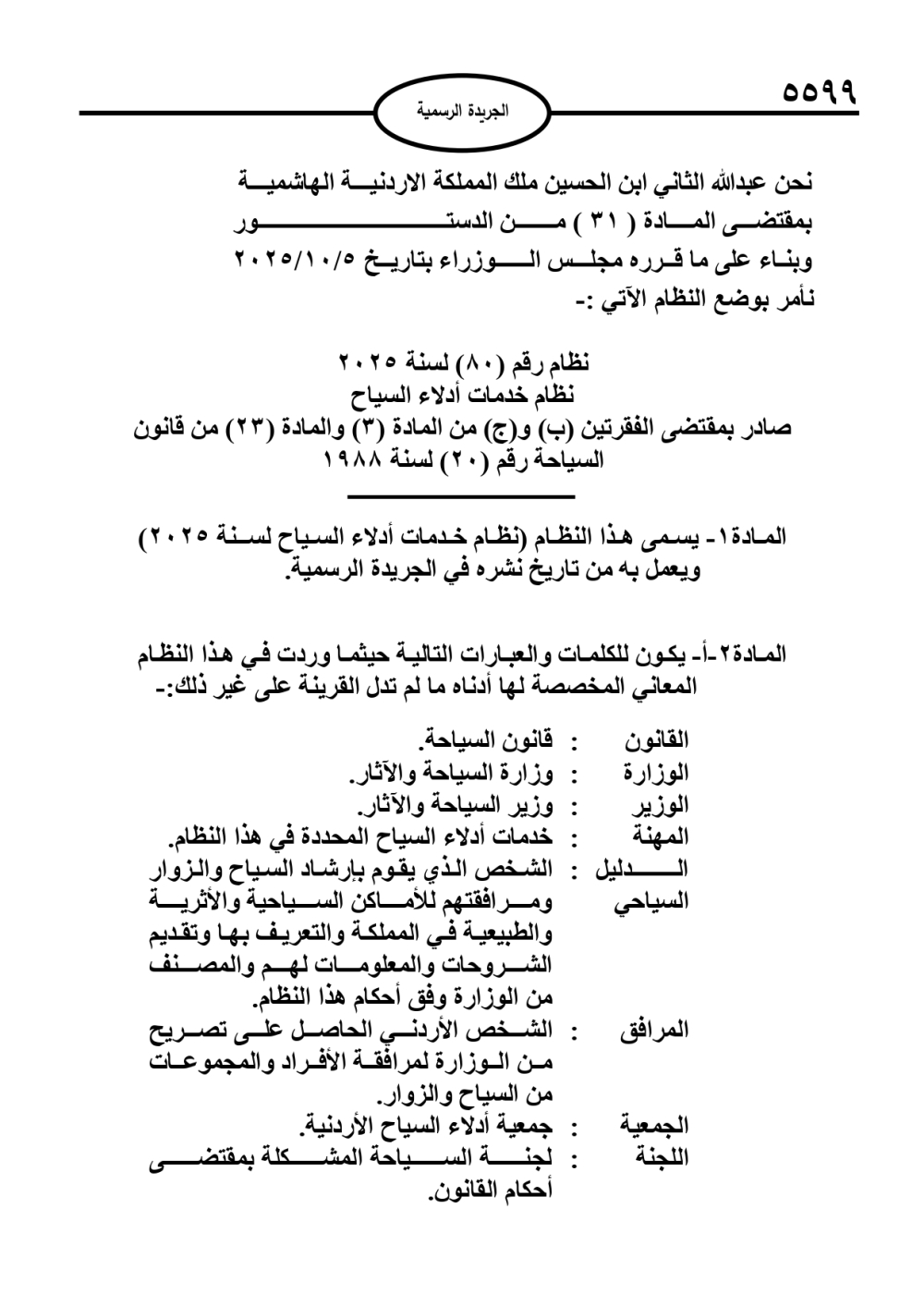 صدر في عدد الجريدة الرسمية، الخميس، نظام خدمات أدلاء السياح لسنة 2025، وتاليا نص النظام: