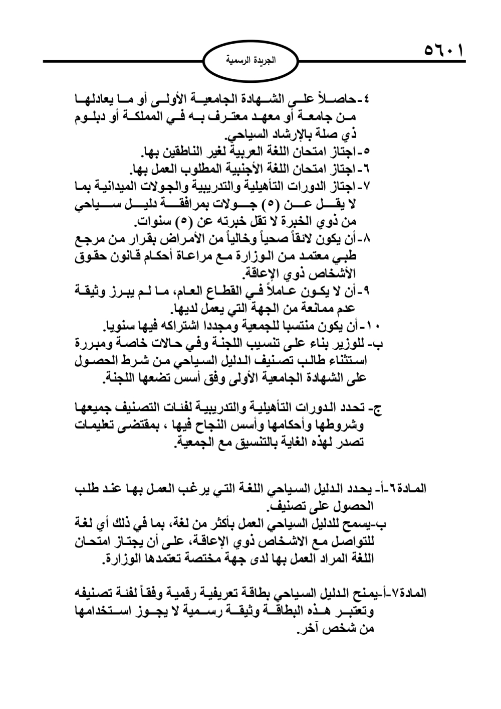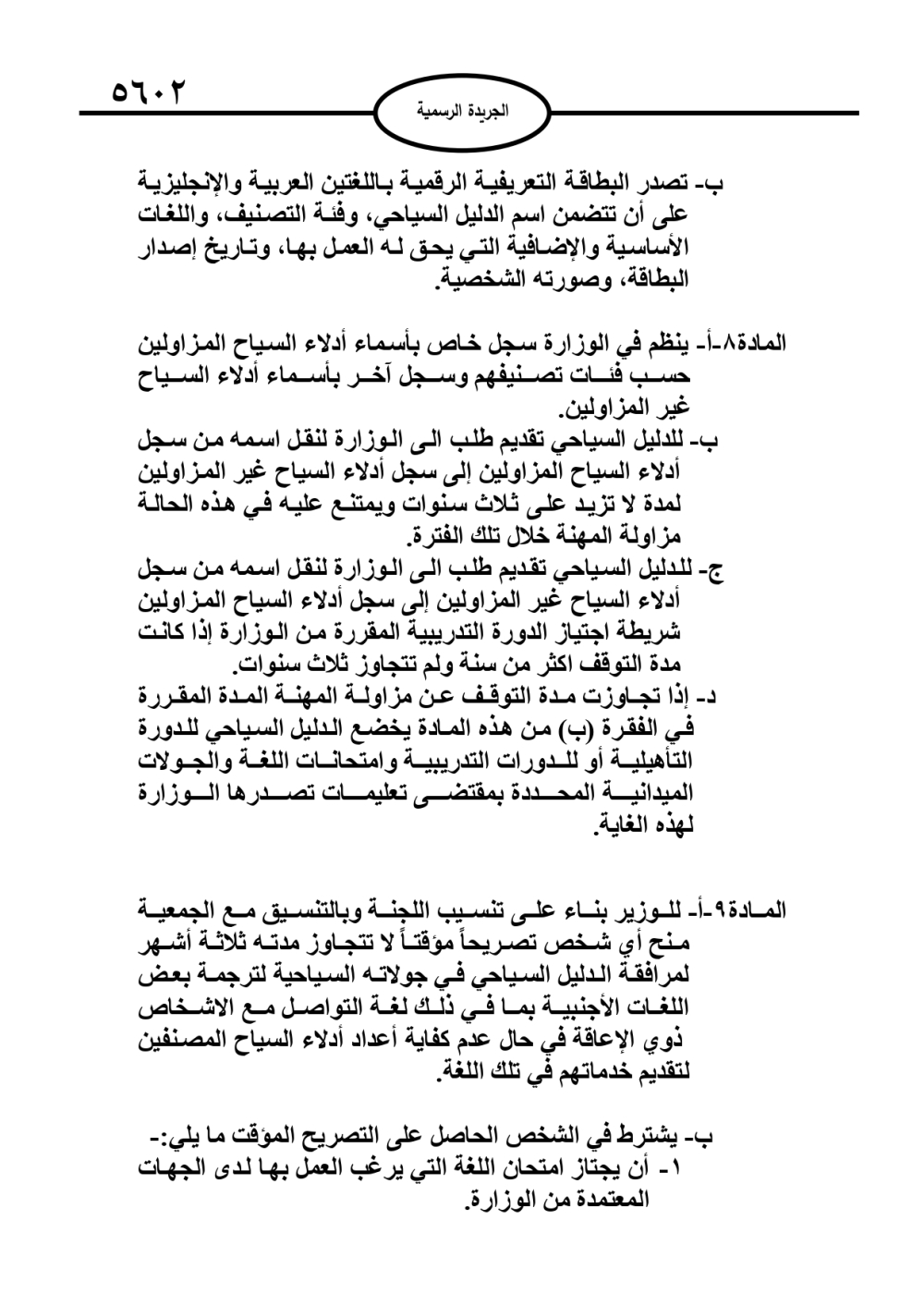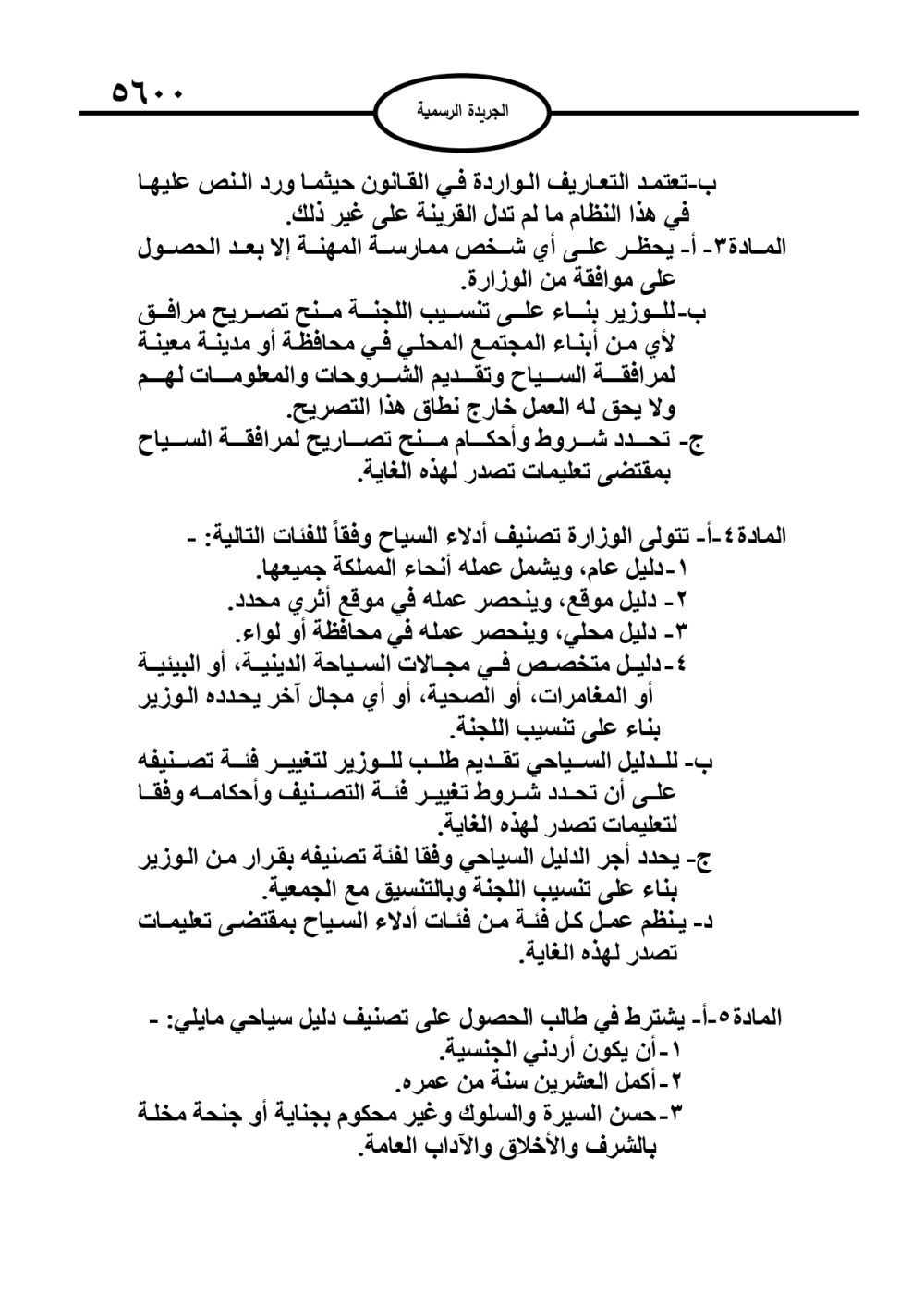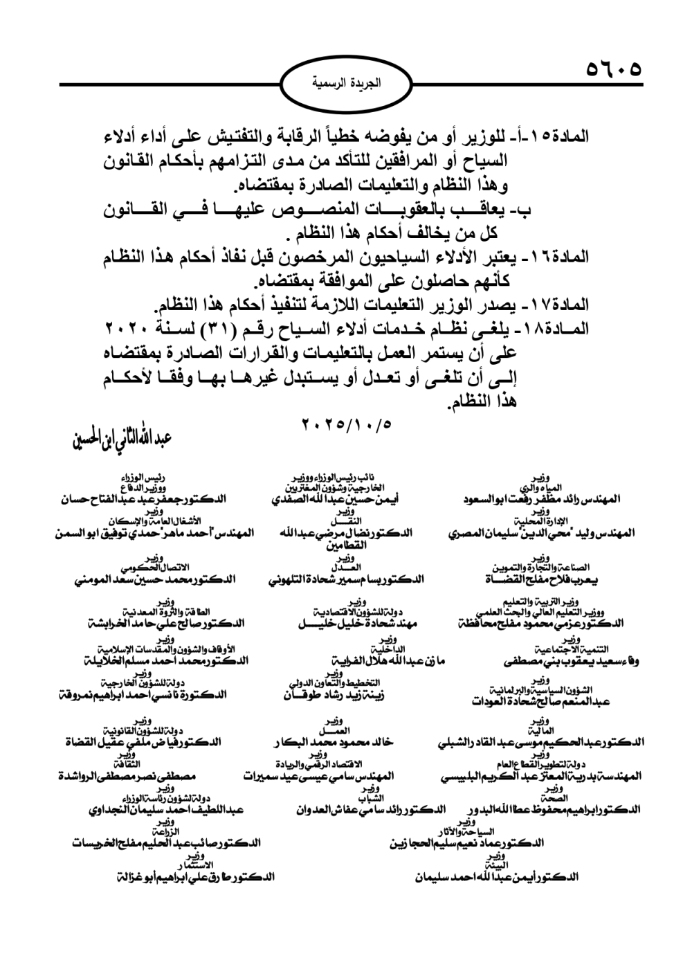 صدر في عدد الجريدة الرسمية، الخميس، نظام خدمات أدلاء السياح لسنة 2025، وتاليا نص النظام: