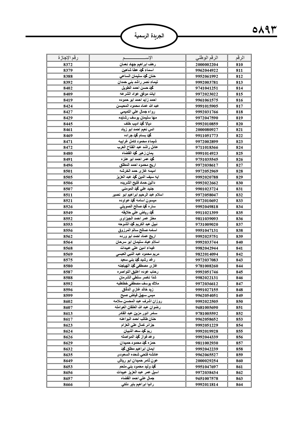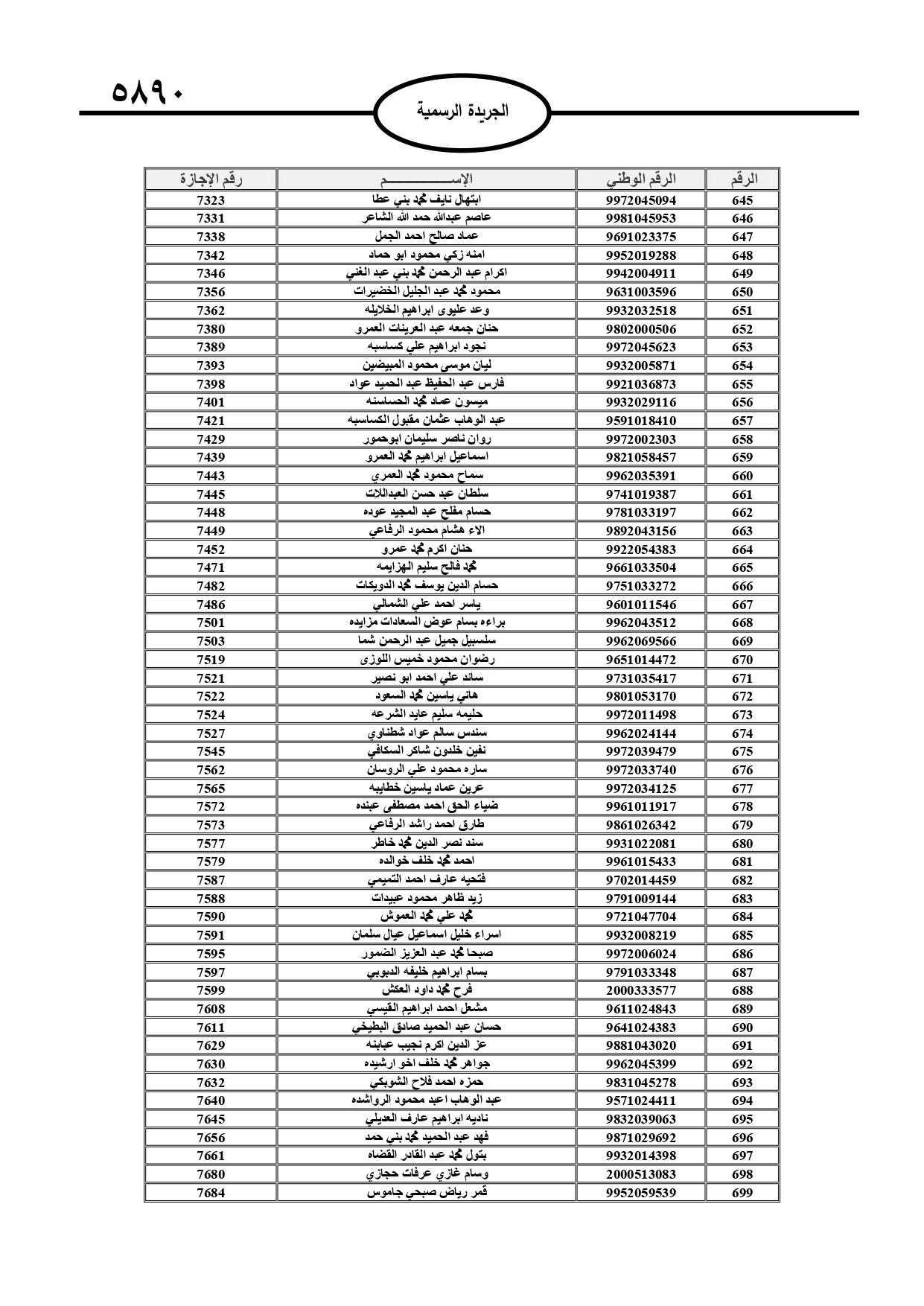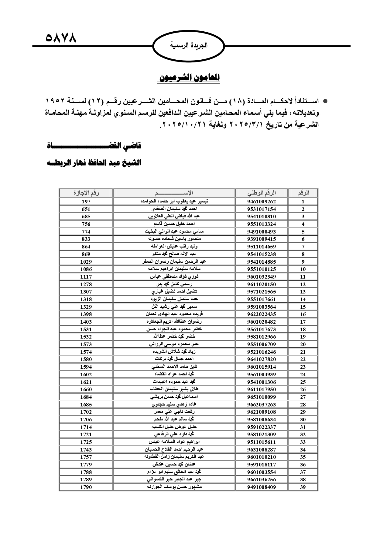 أعلن قاضي القضاة الشيخ عبد الحافظ الربطه، أسماء المحامين الشرعيين الدافعين للرسم السنوي لمزاولة مهنة المحاماة الشرعية، وتاليا الأسماء: