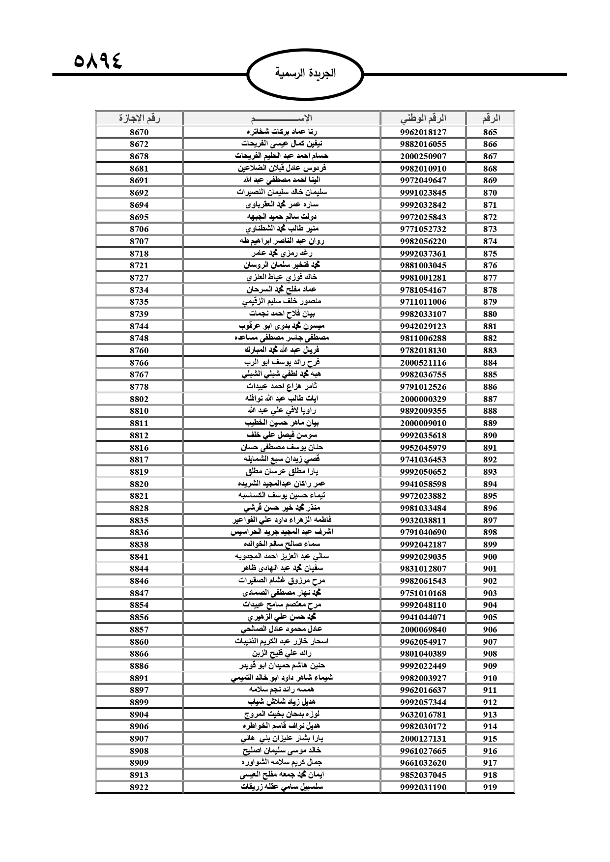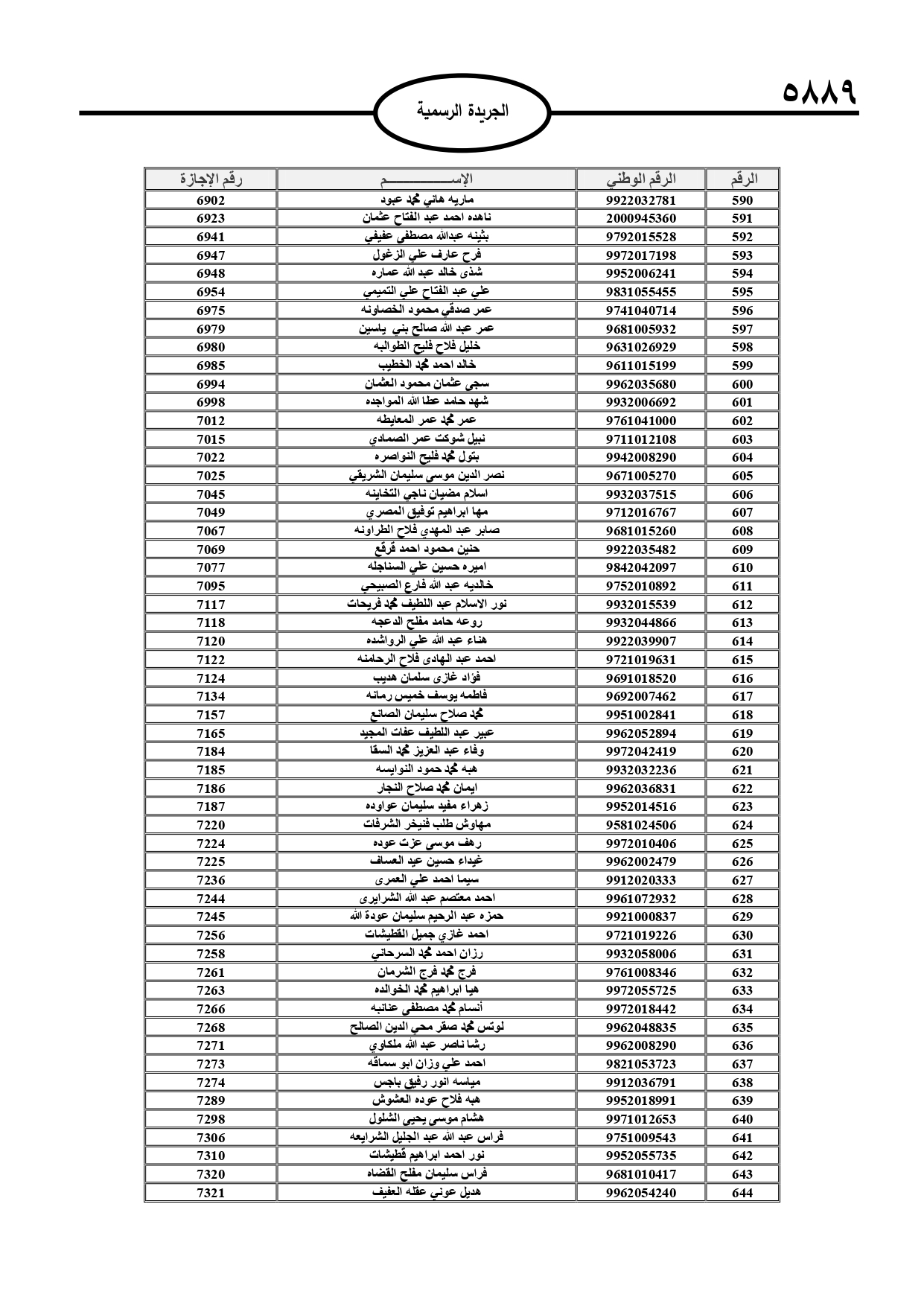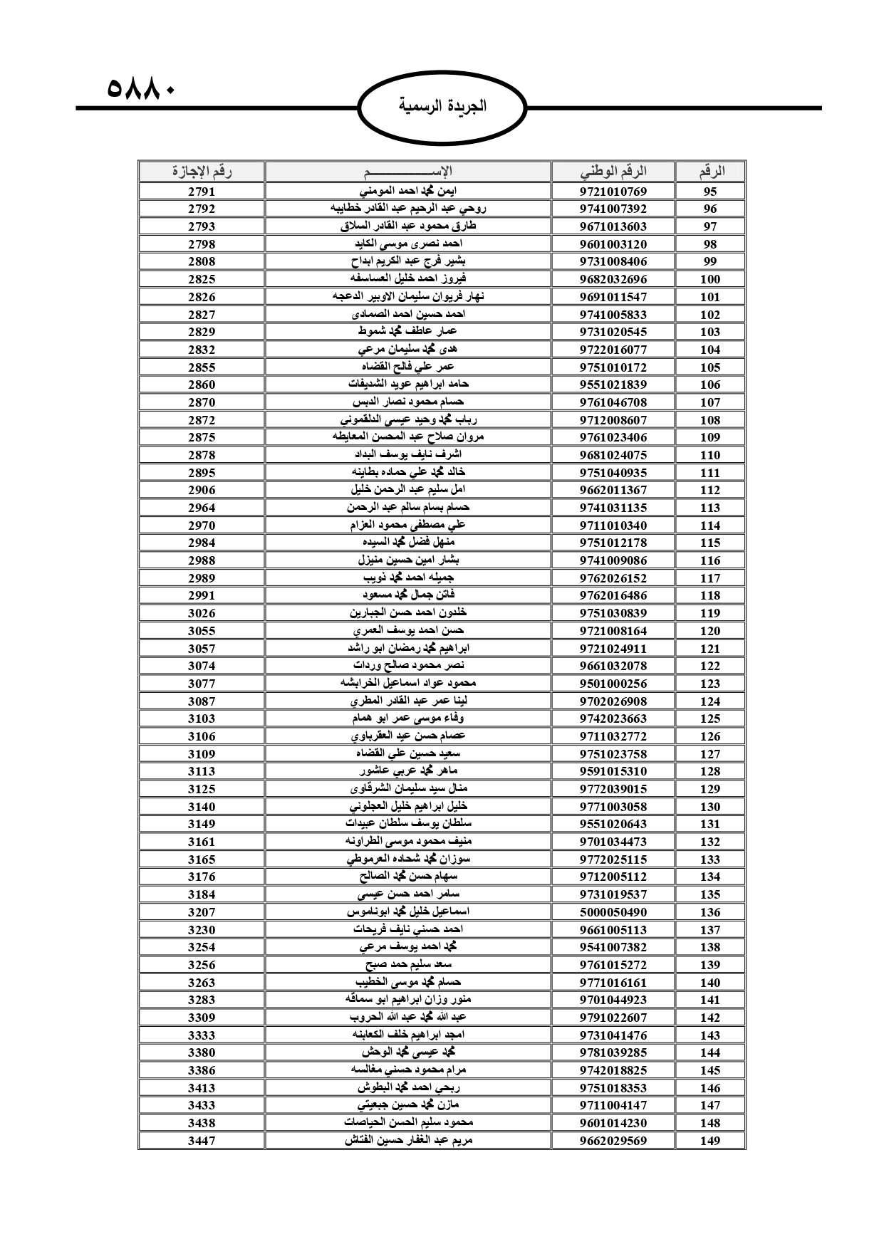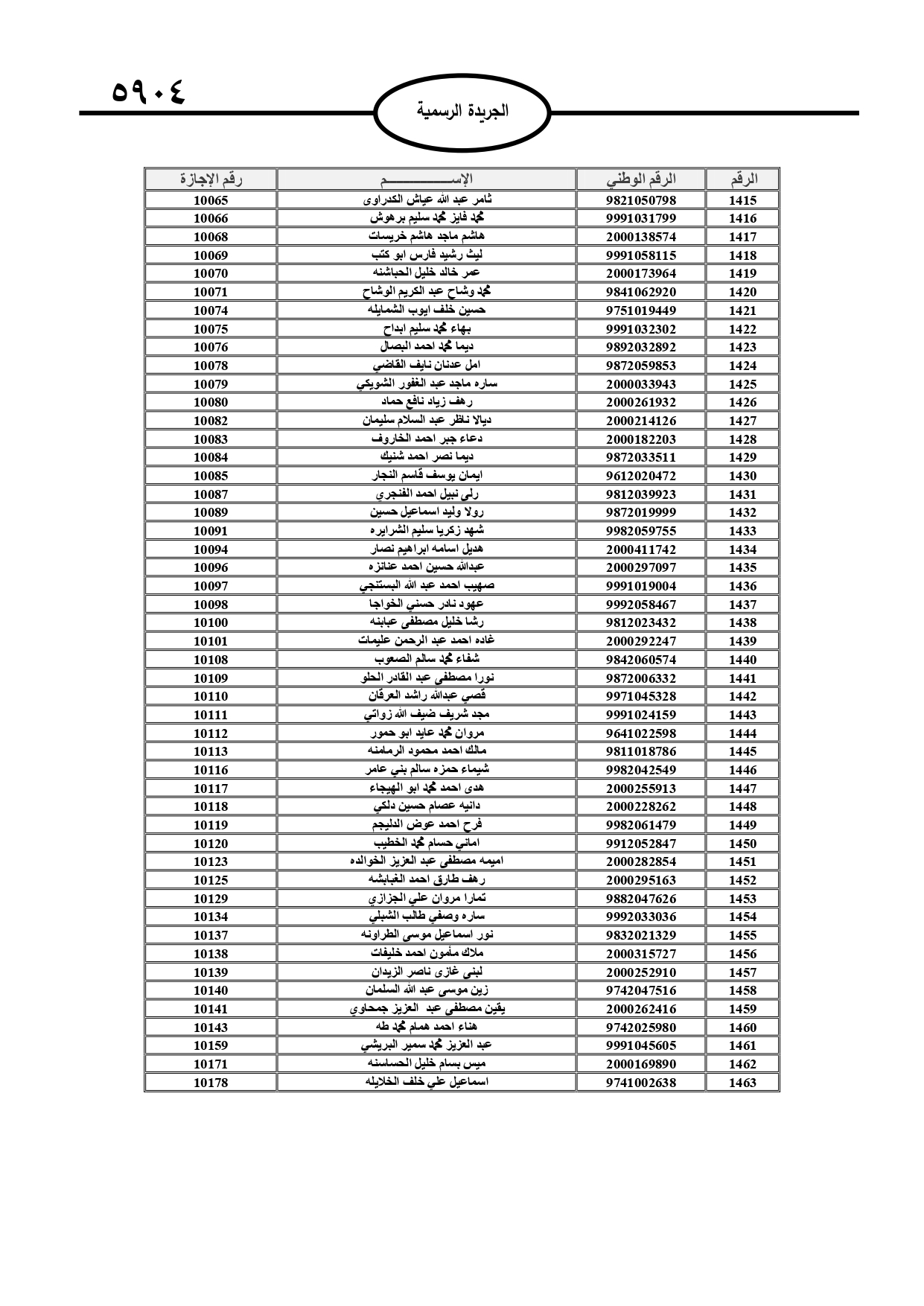 أعلن قاضي القضاة الشيخ عبد الحافظ الربطه، أسماء المحامين الشرعيين الدافعين للرسم السنوي لمزاولة مهنة المحاماة الشرعية، وتاليا الأسماء: