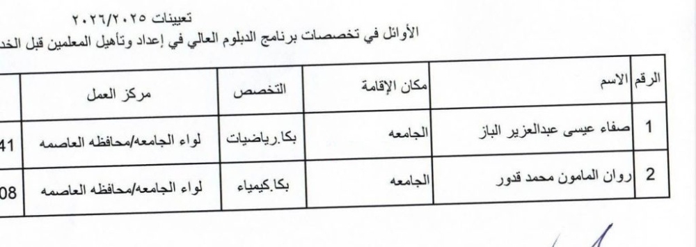 أصدرت وزارة التربية والتعليم عددا من التعيينات الجديدة ممن أنهوا برنامج الدبلوم العالي لإعداد المعلمين، وتاليا تعميم التعيينات والأسماء: