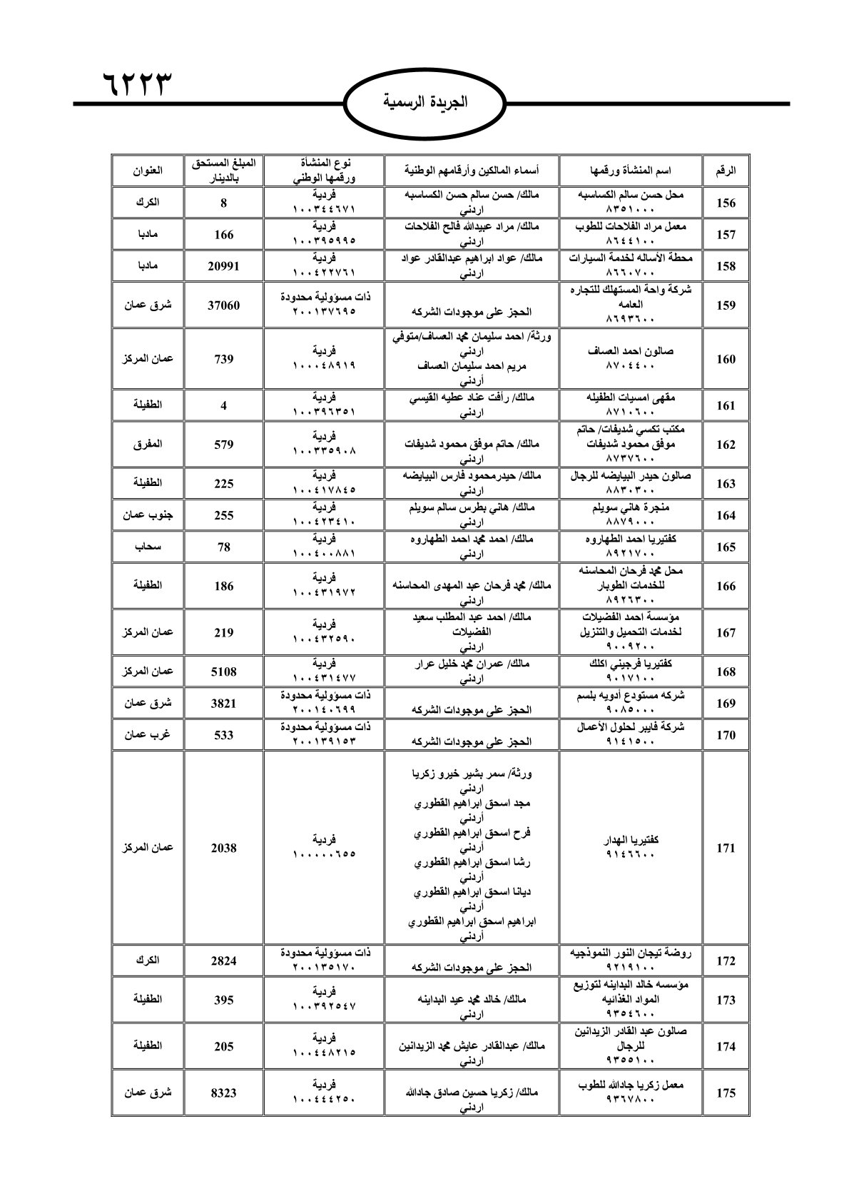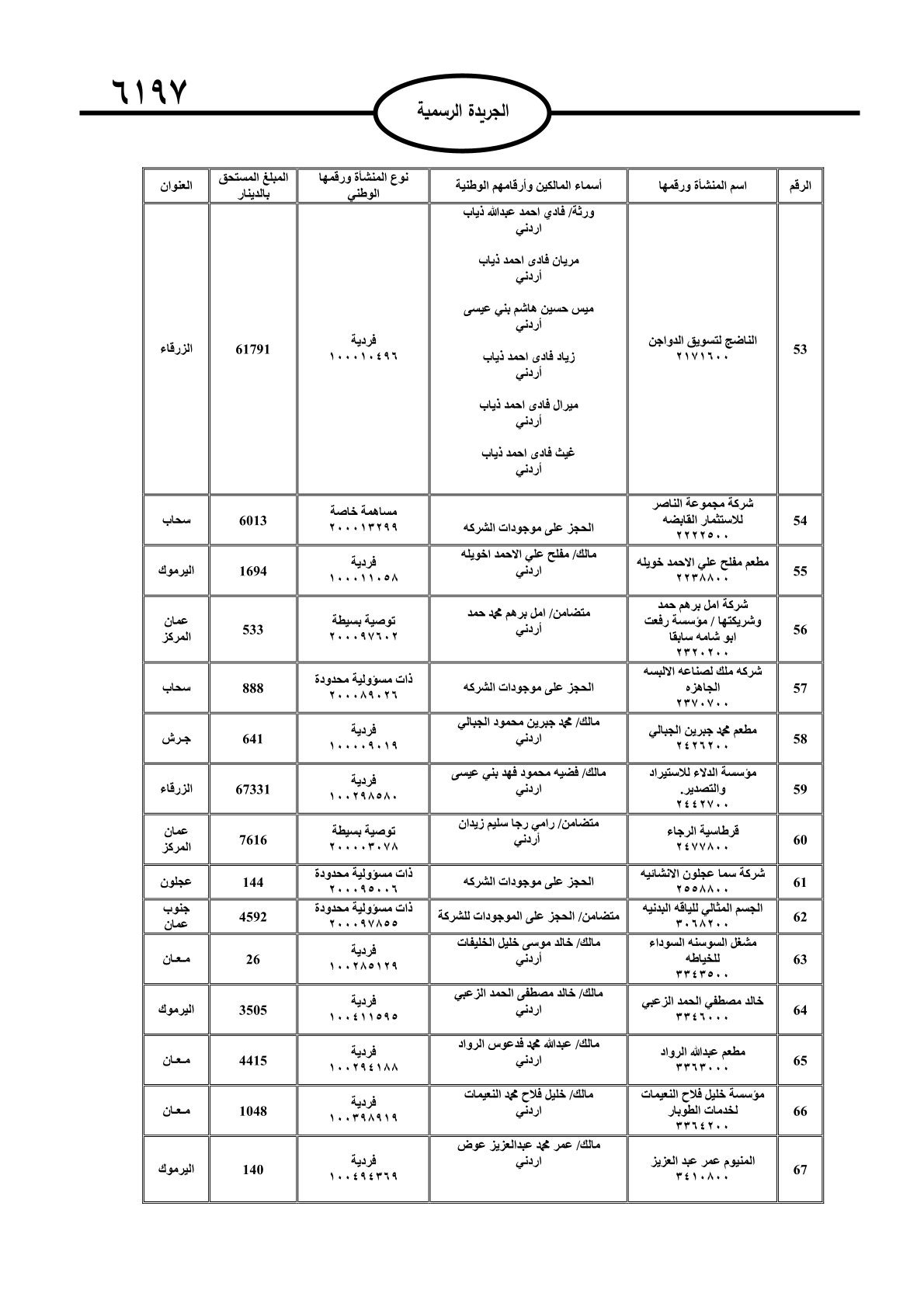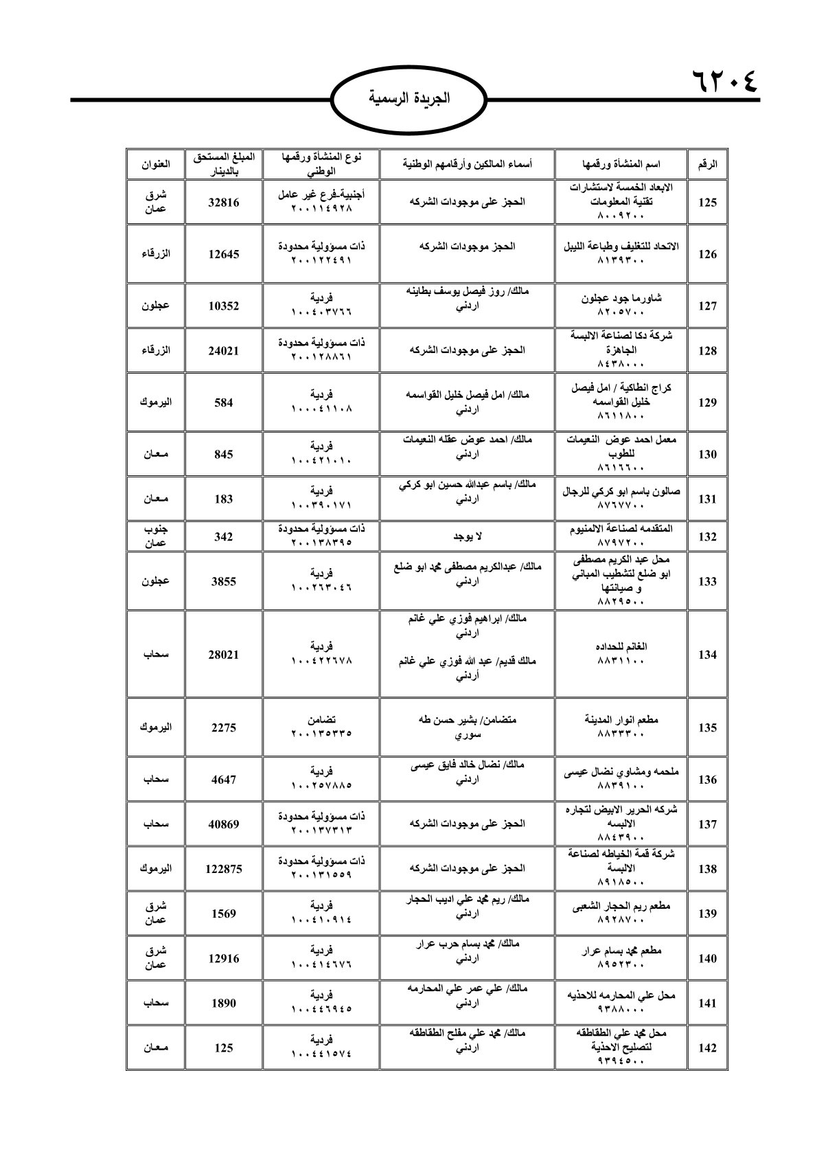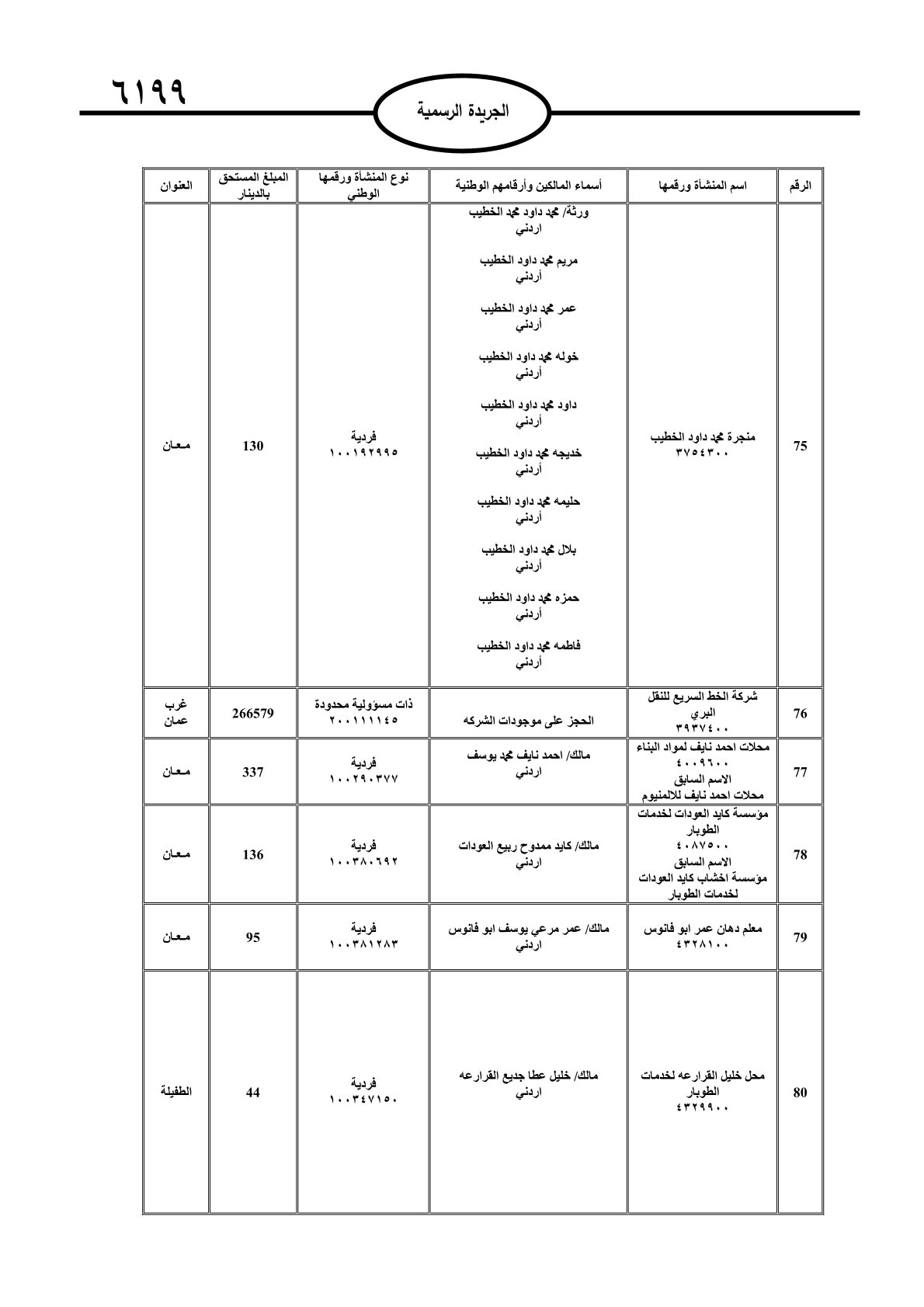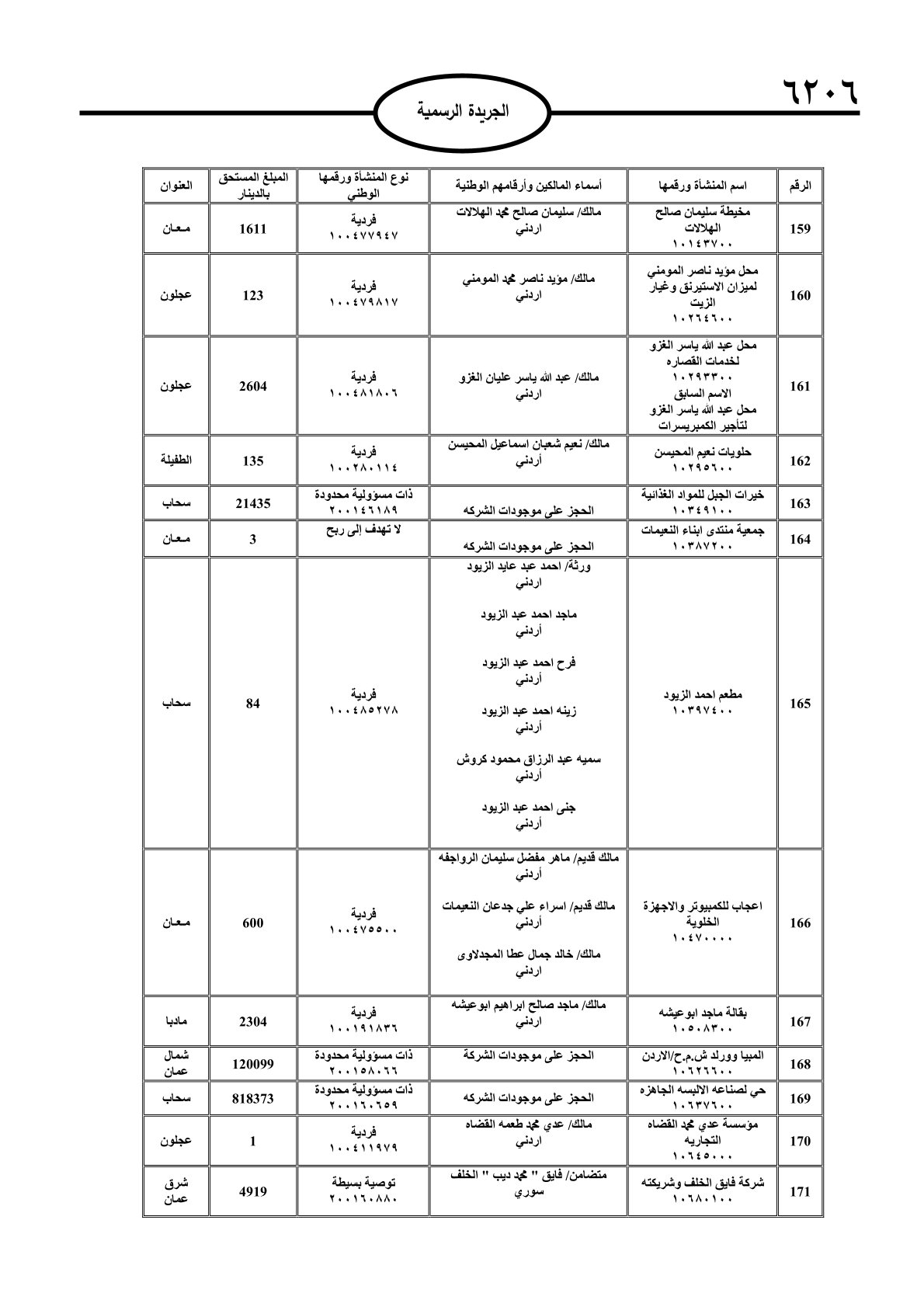عملا بأحكام قانون تحصيل الأموال العامة، نشرت الجريدة الرسمية الصادرة اليوم الأحد قوائم مطالبات مالية بحق مئات الأردنيين.