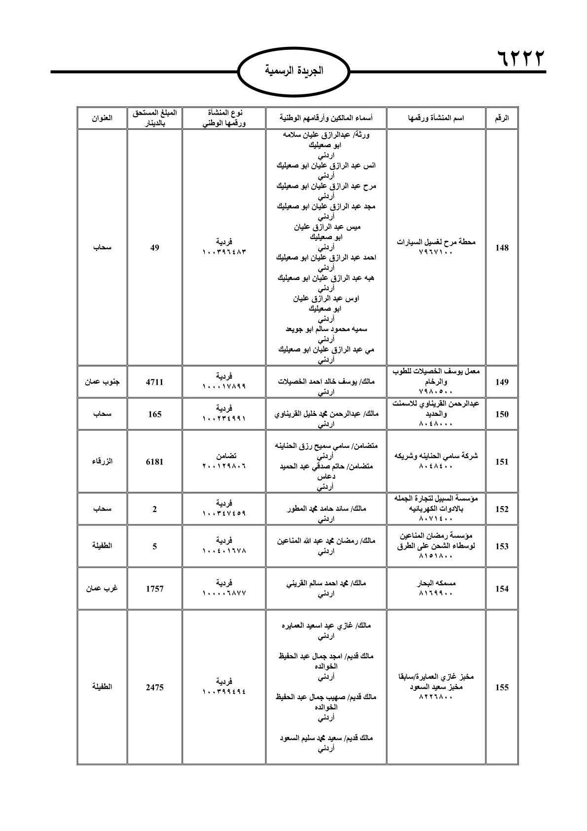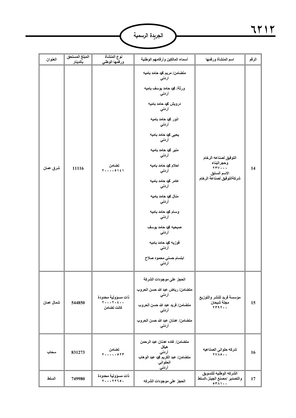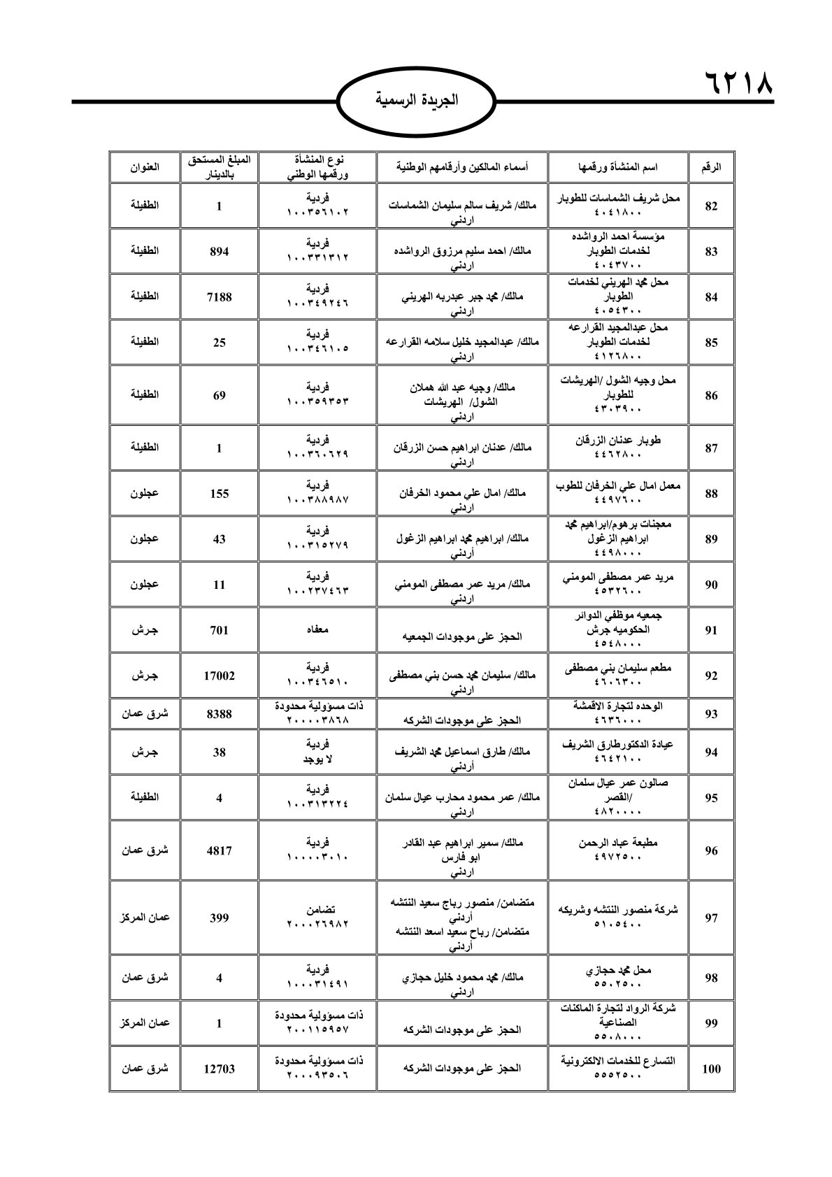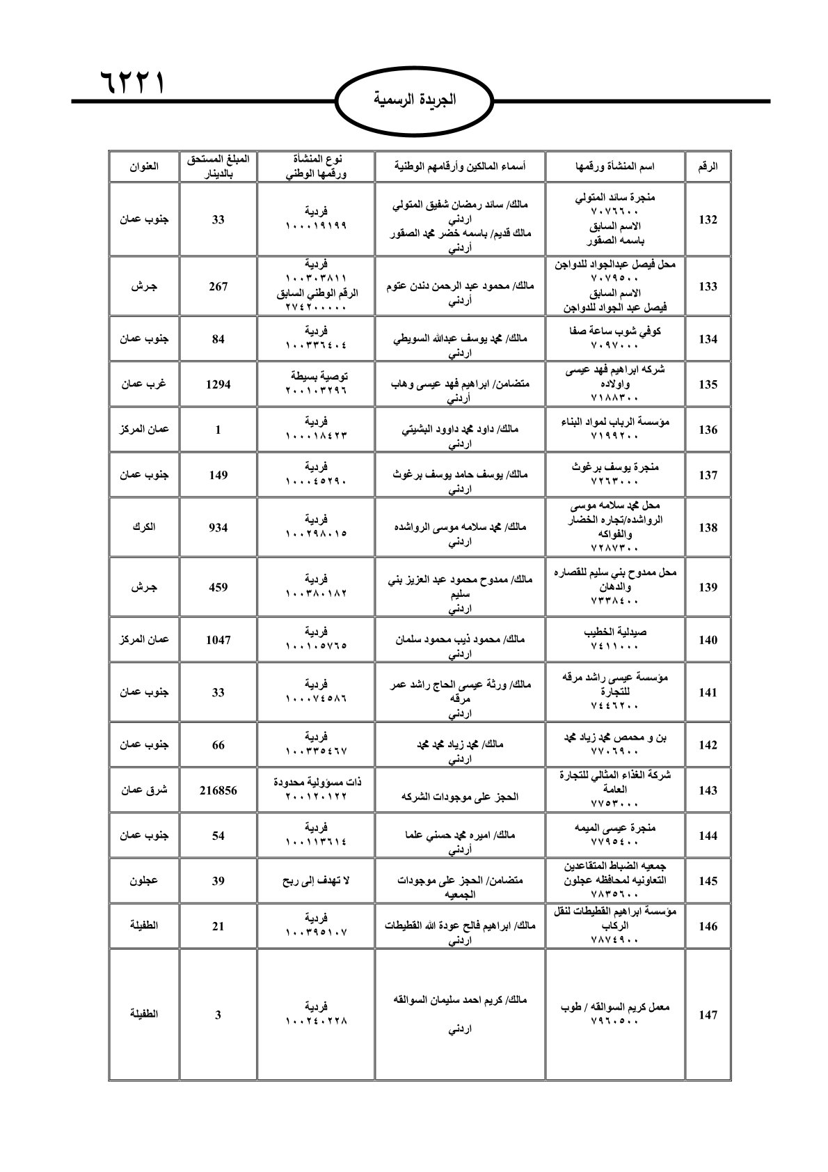 عملا بأحكام قانون تحصيل الأموال العامة، نشرت الجريدة الرسمية الصادرة اليوم الأحد قوائم مطالبات مالية بحق مئات الأردنيين.
