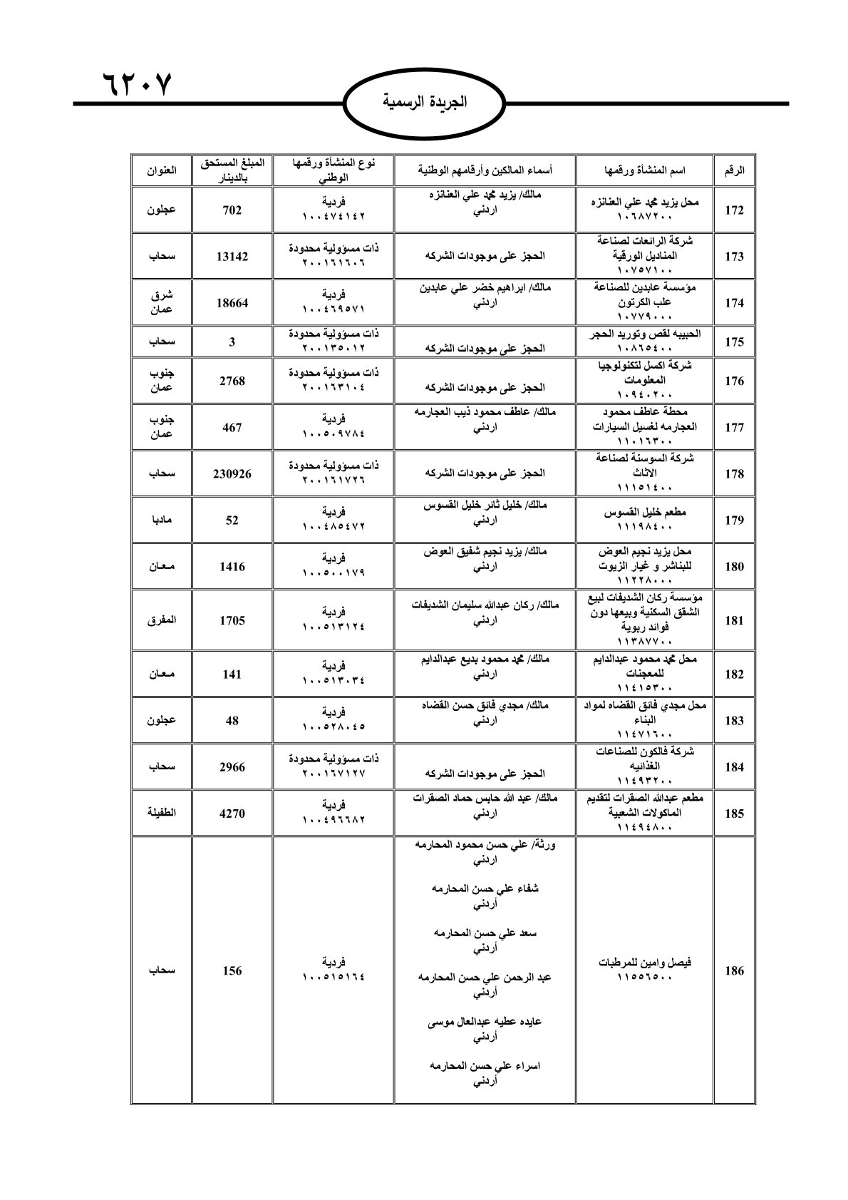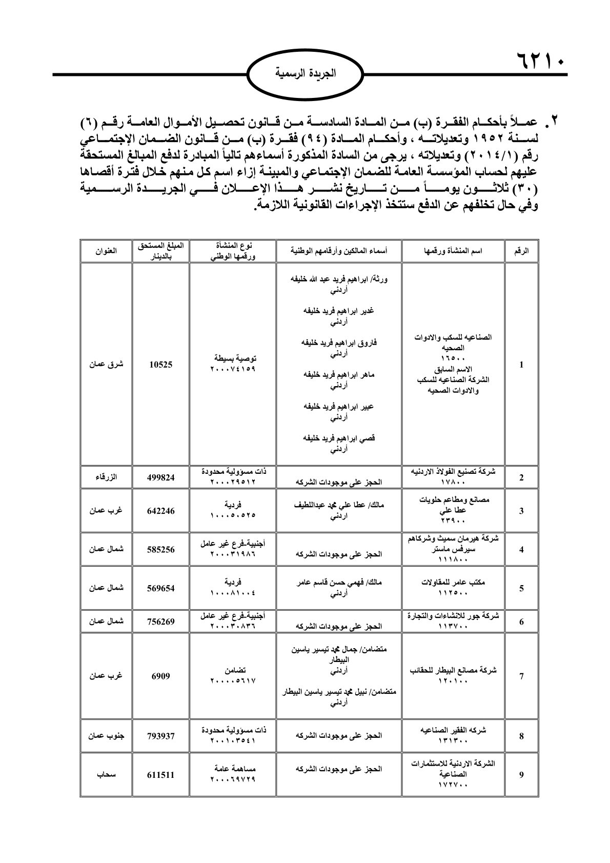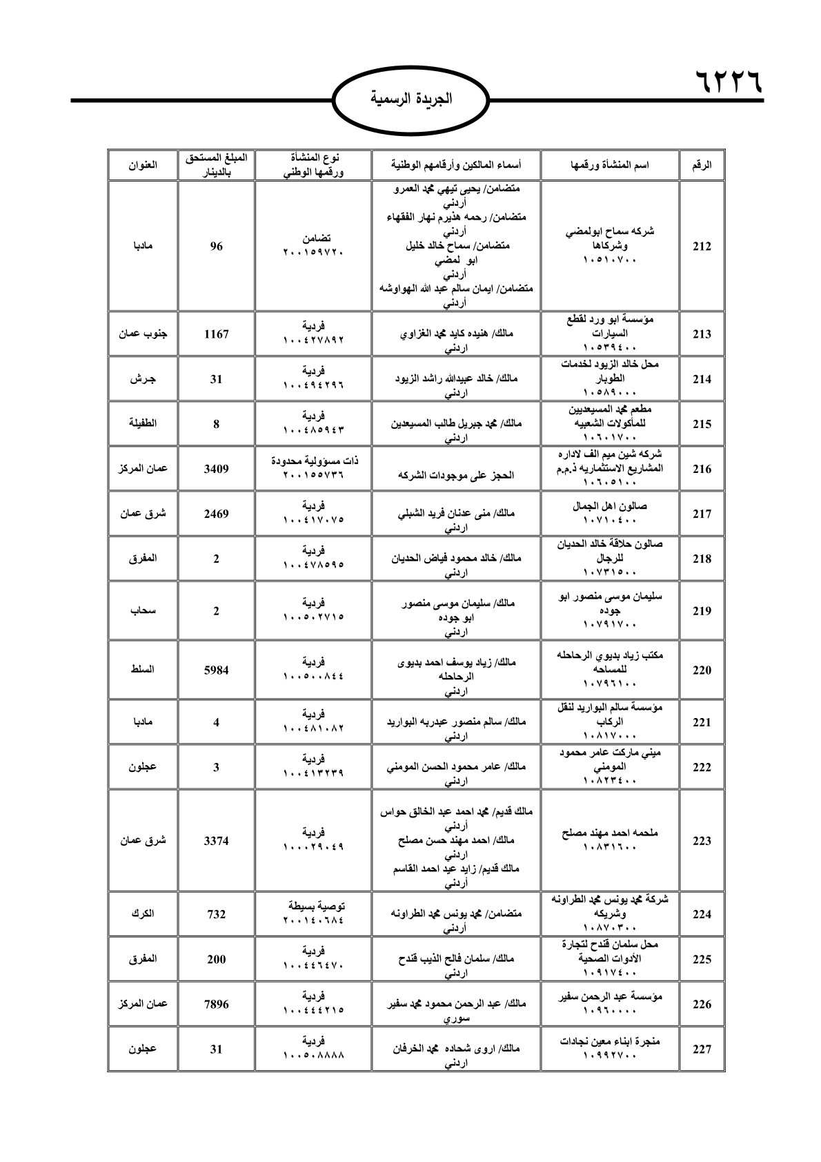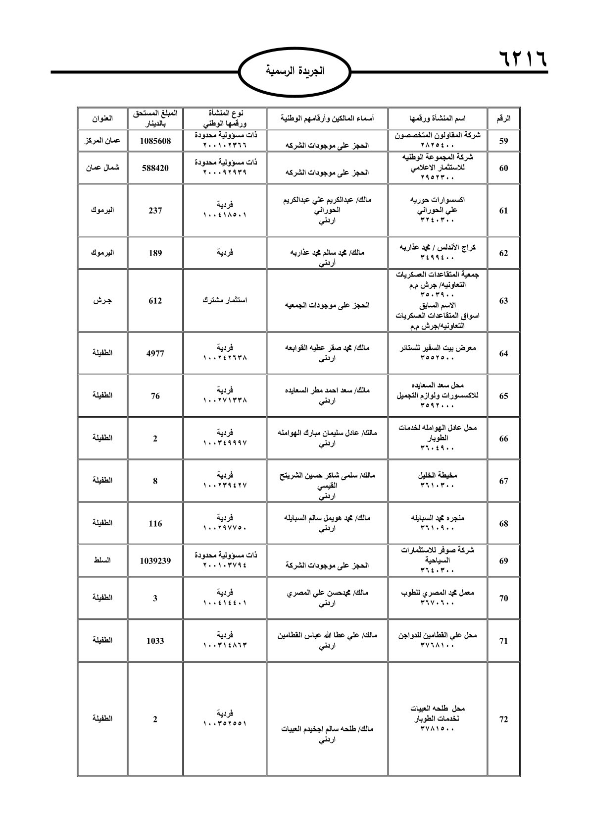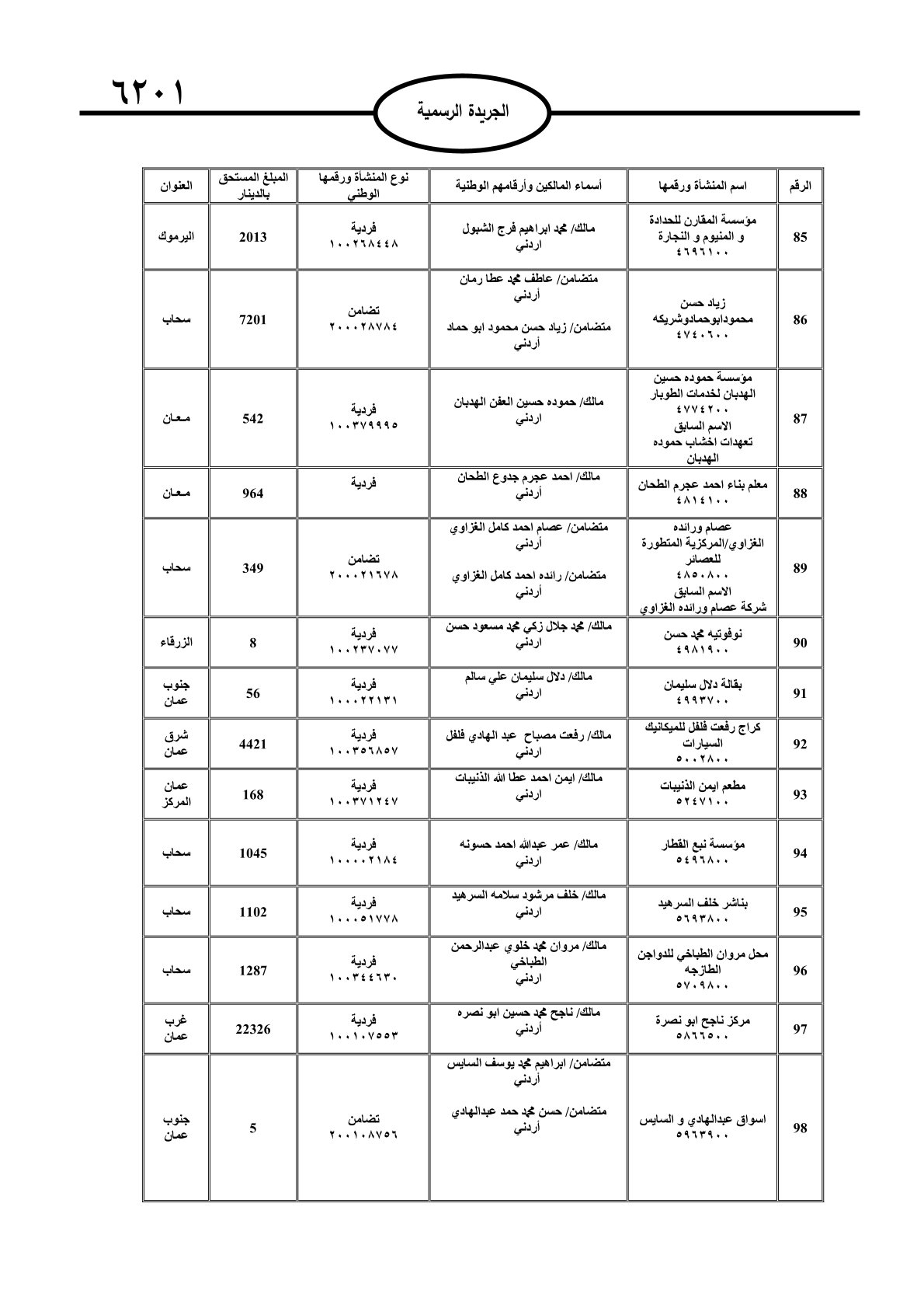 عملا بأحكام قانون تحصيل الأموال العامة، نشرت الجريدة الرسمية الصادرة اليوم الأحد قوائم مطالبات مالية بحق مئات الأردنيين.
