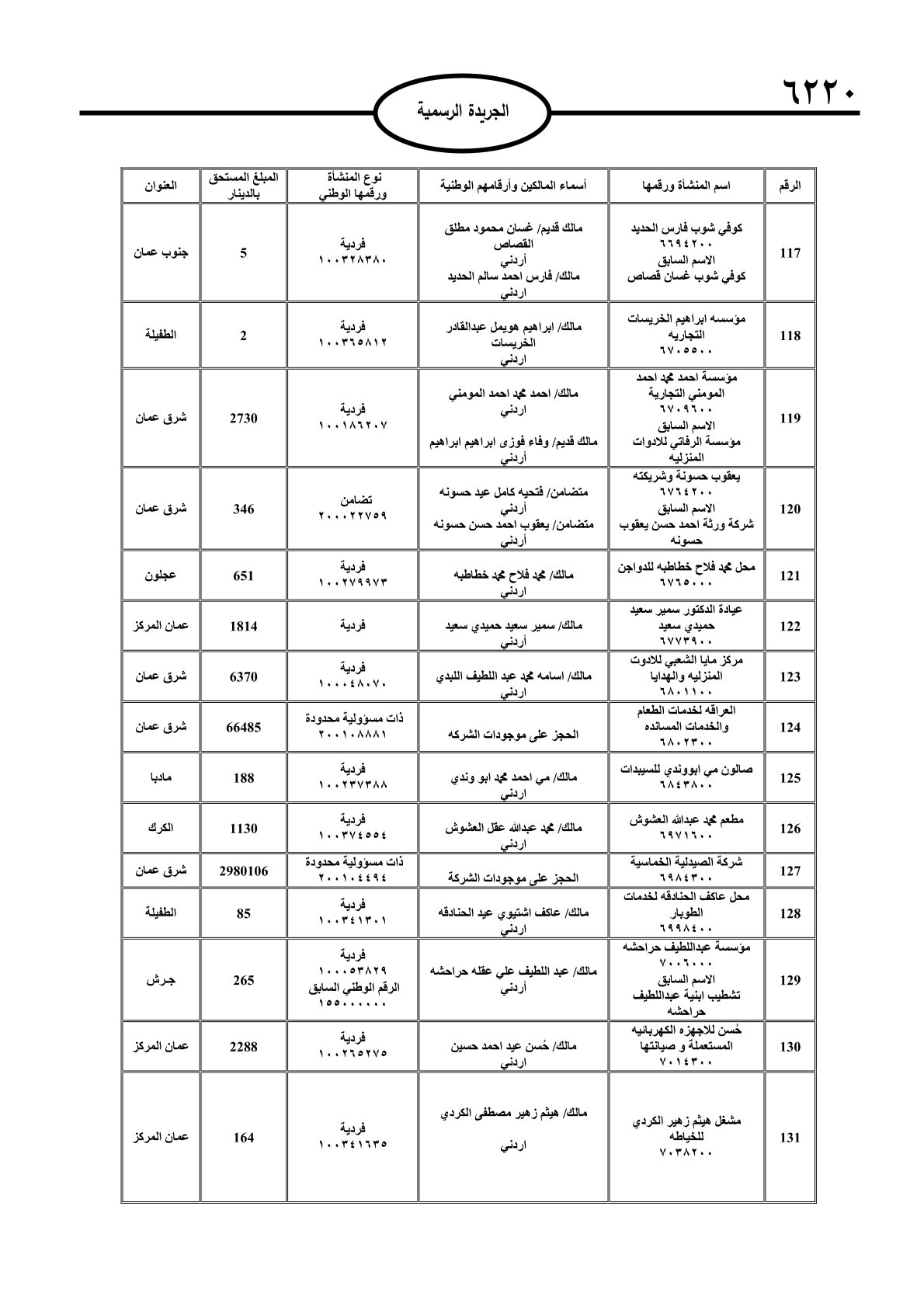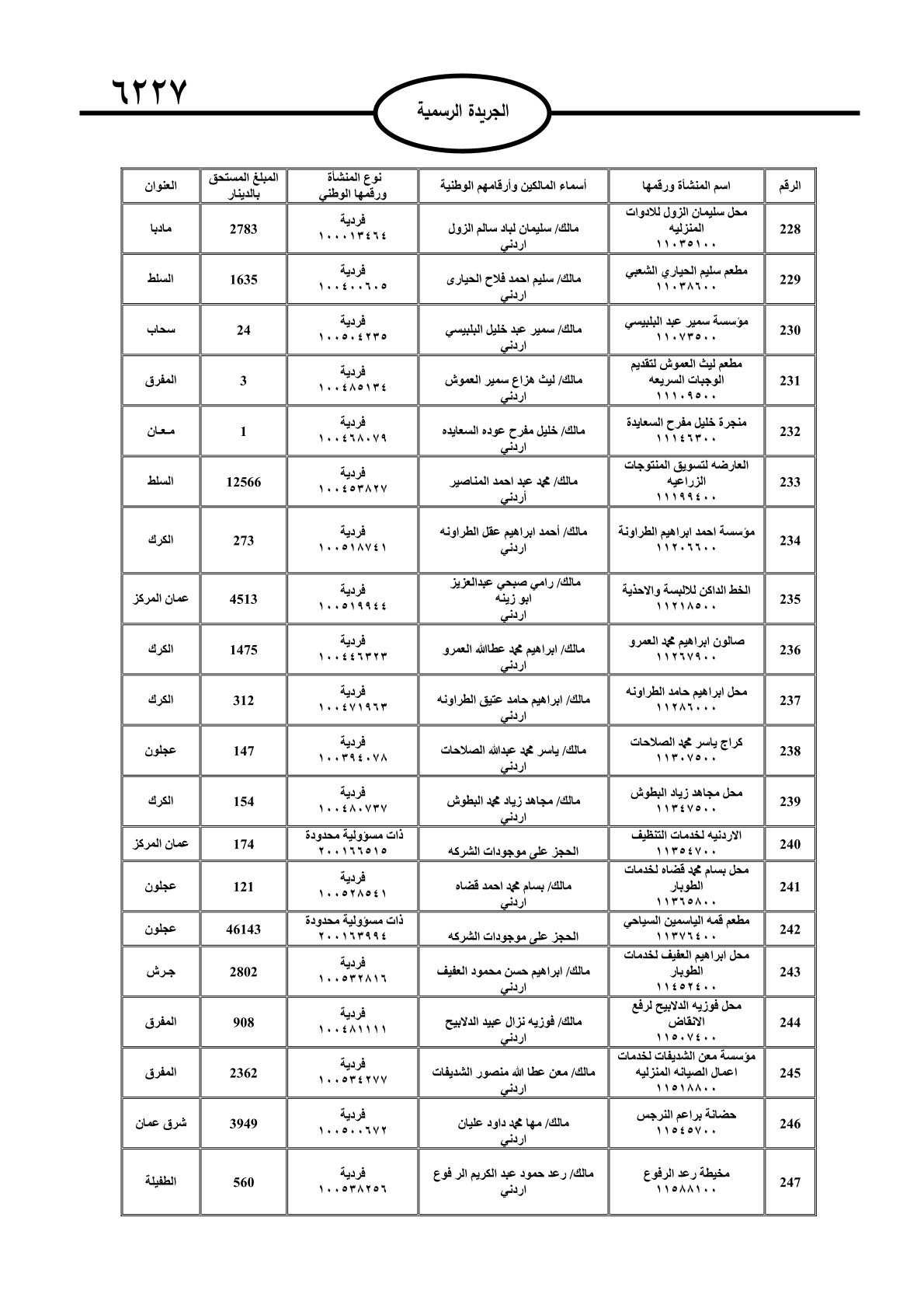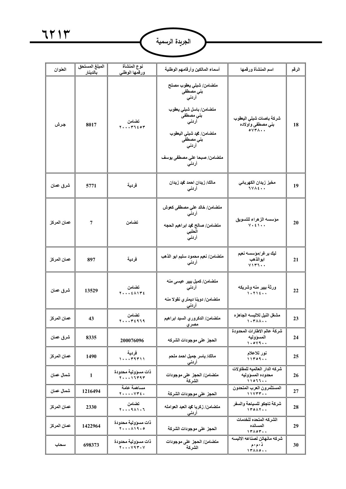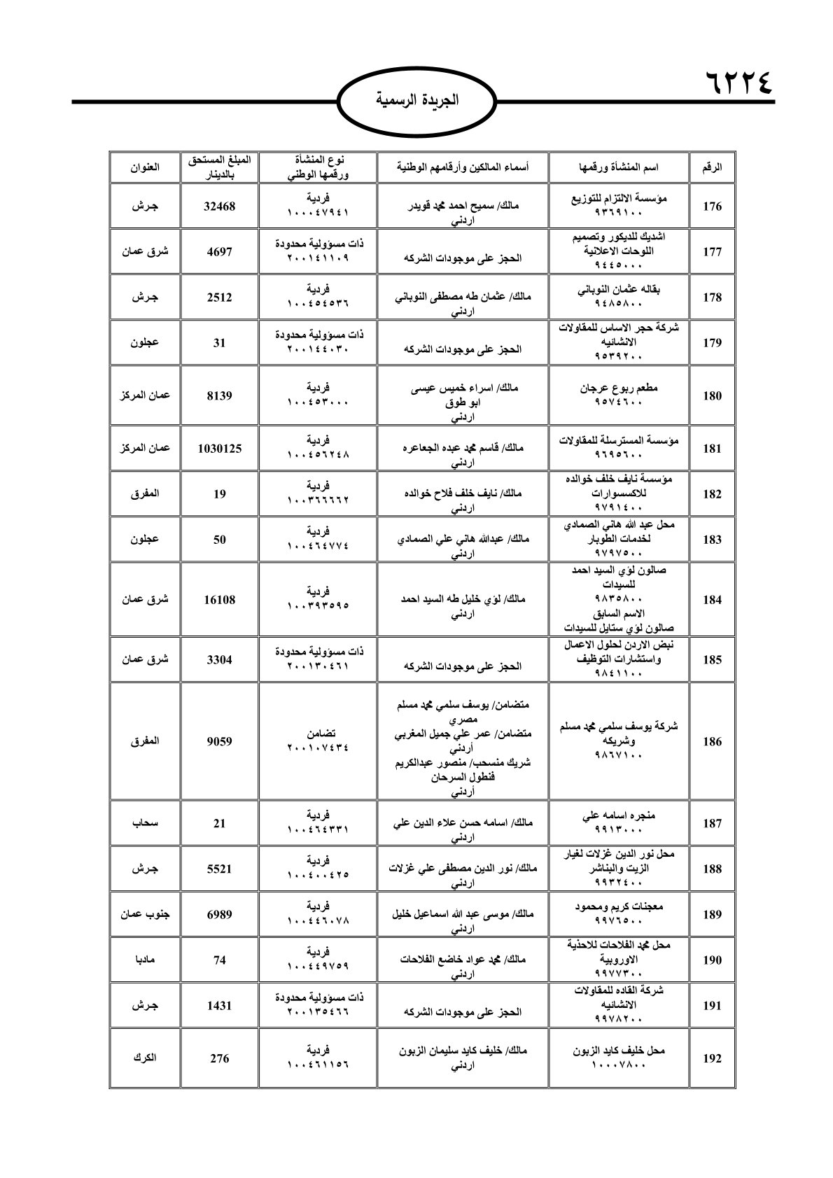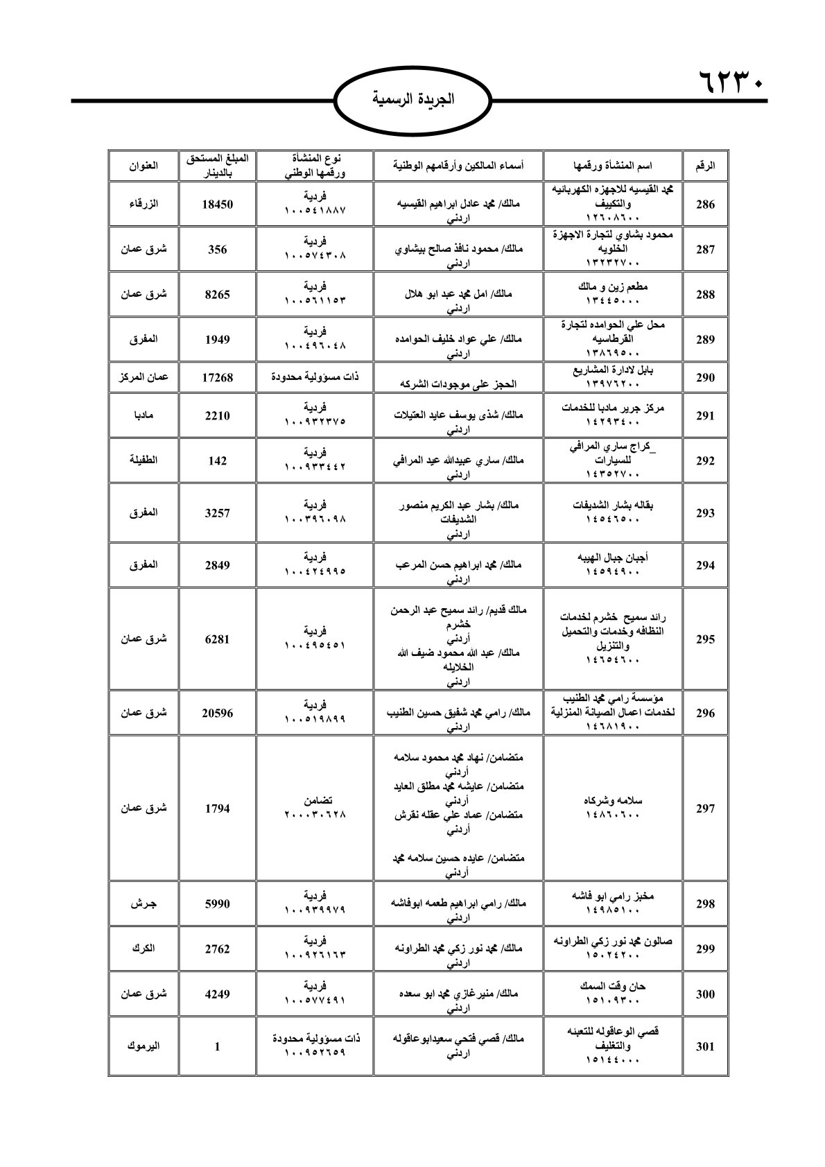 عملا بأحكام قانون تحصيل الأموال العامة، نشرت الجريدة الرسمية الصادرة اليوم الأحد قوائم مطالبات مالية بحق مئات الأردنيين.