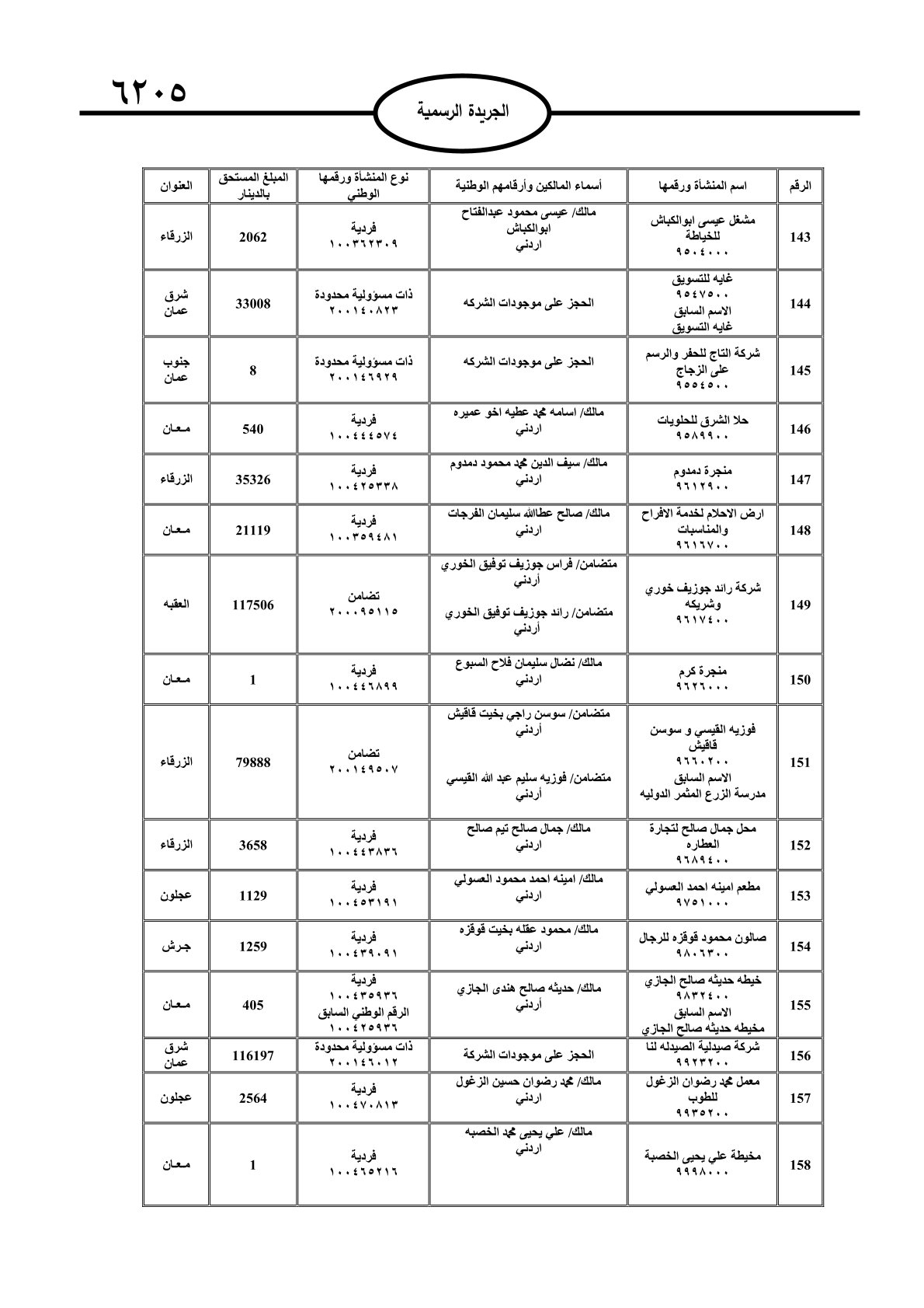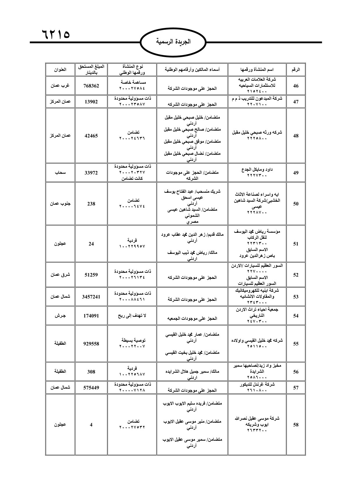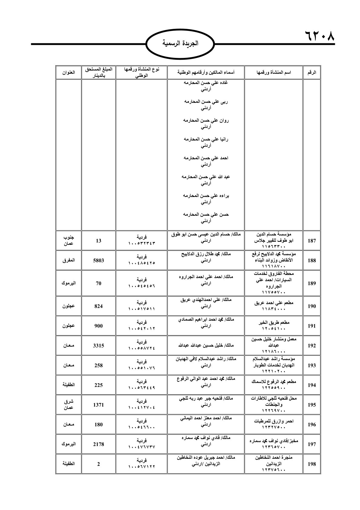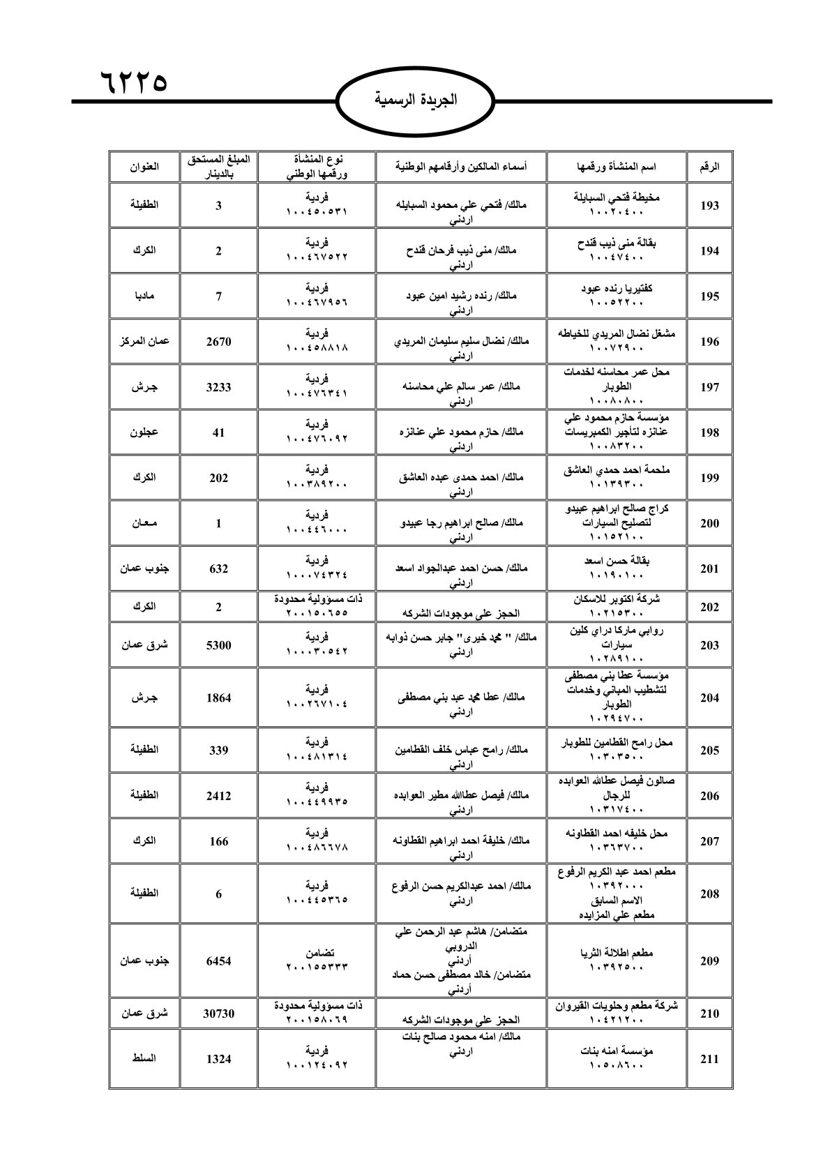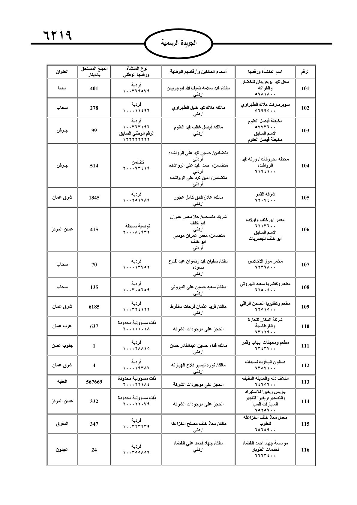 عملا بأحكام قانون تحصيل الأموال العامة، نشرت الجريدة الرسمية الصادرة اليوم الأحد قوائم مطالبات مالية بحق مئات الأردنيين.