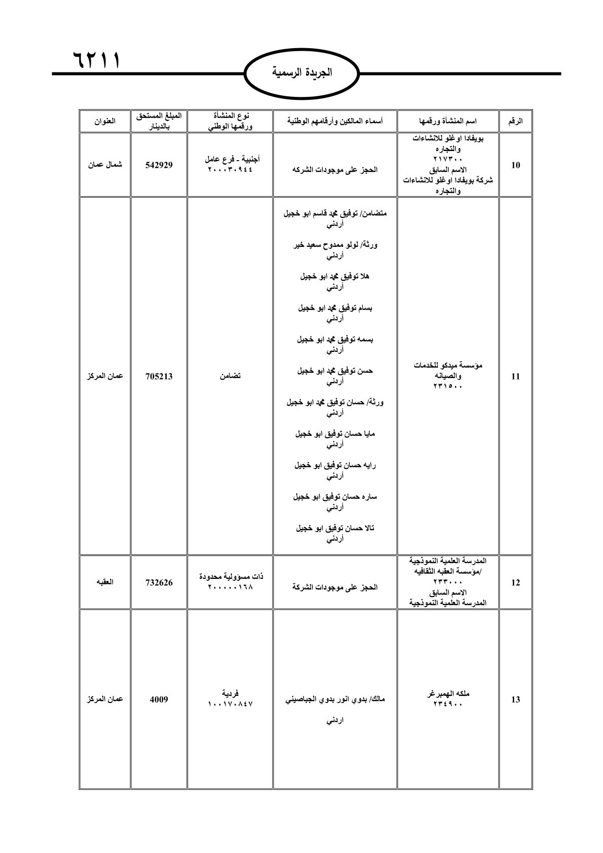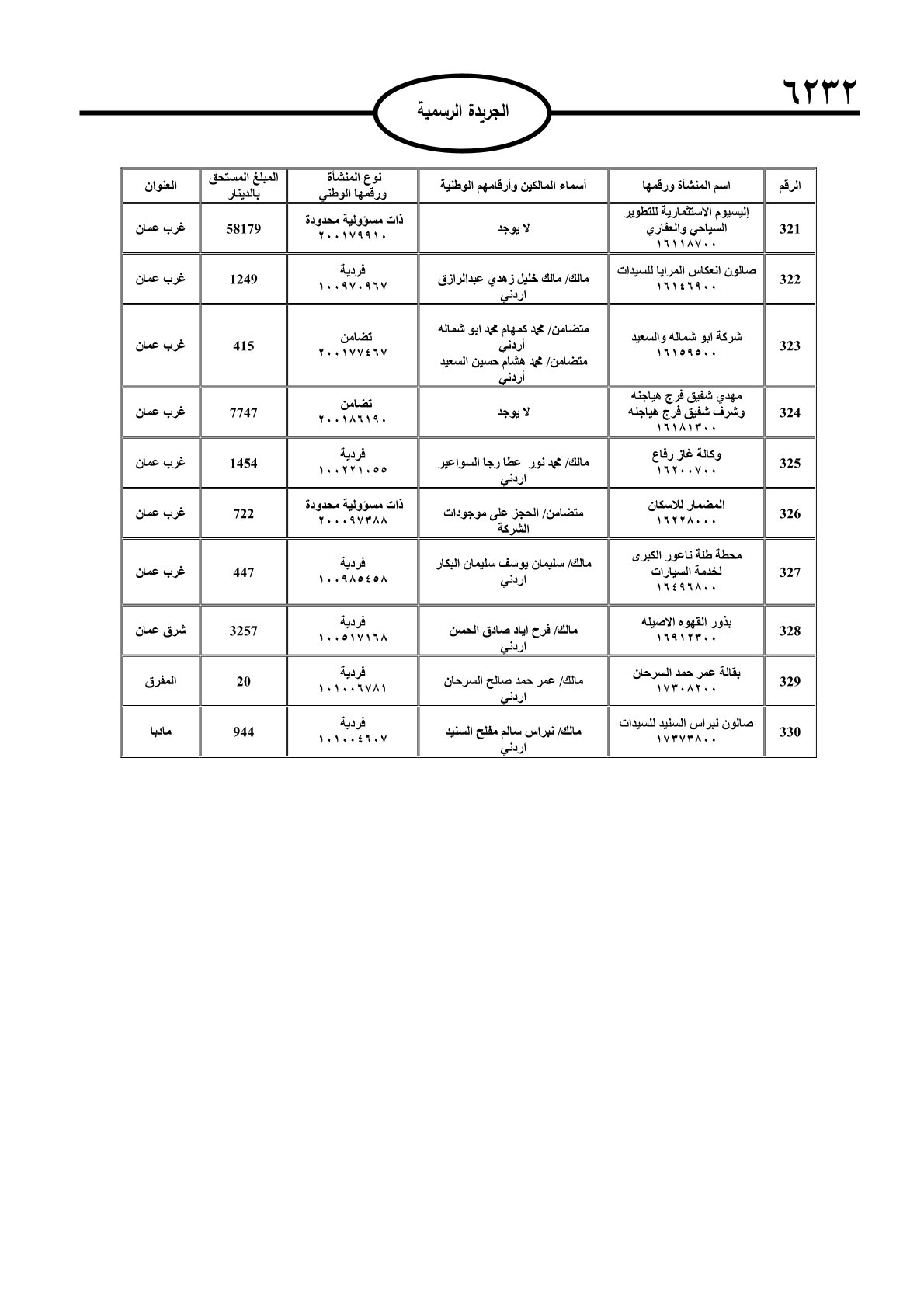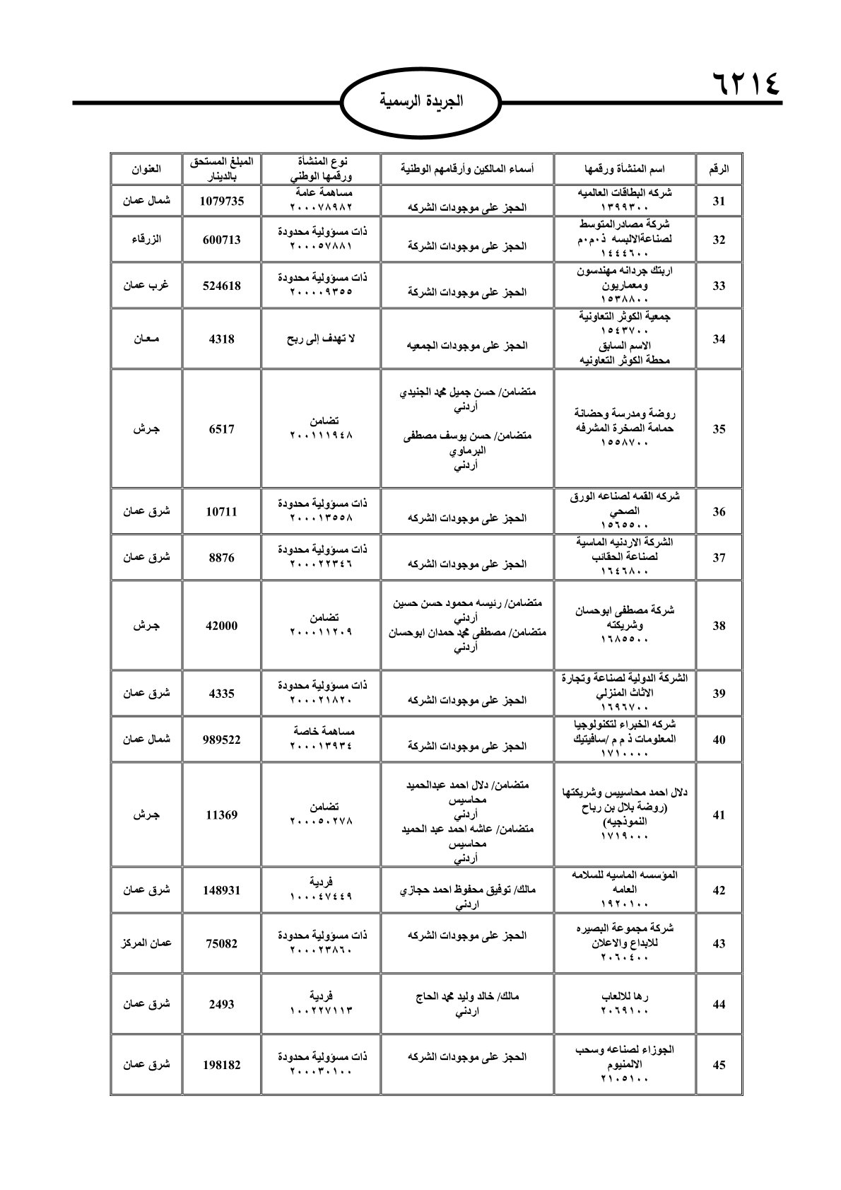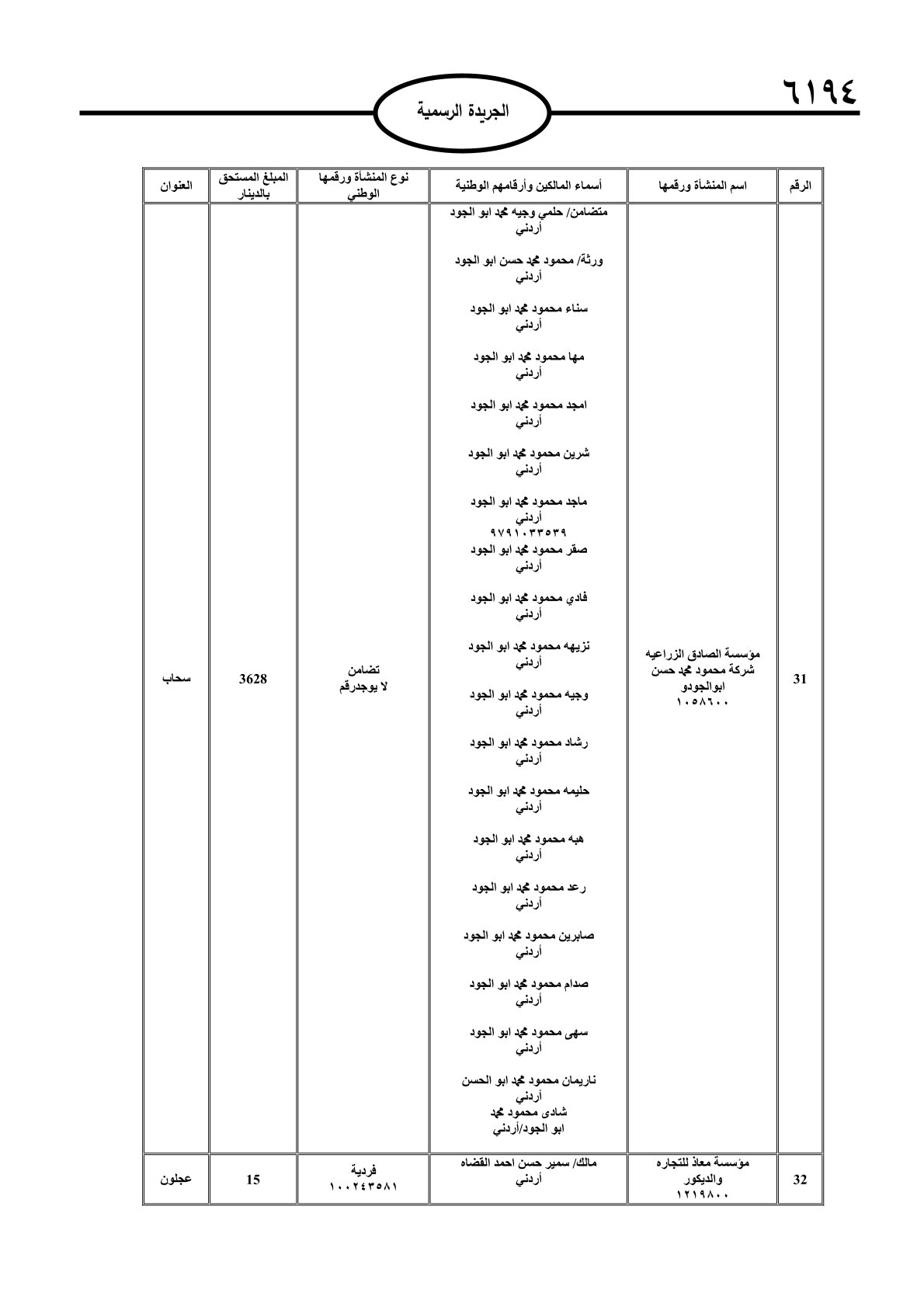 عملا بأحكام قانون تحصيل الأموال العامة، نشرت الجريدة الرسمية الصادرة اليوم الأحد قوائم مطالبات مالية بحق مئات الأردنيين.