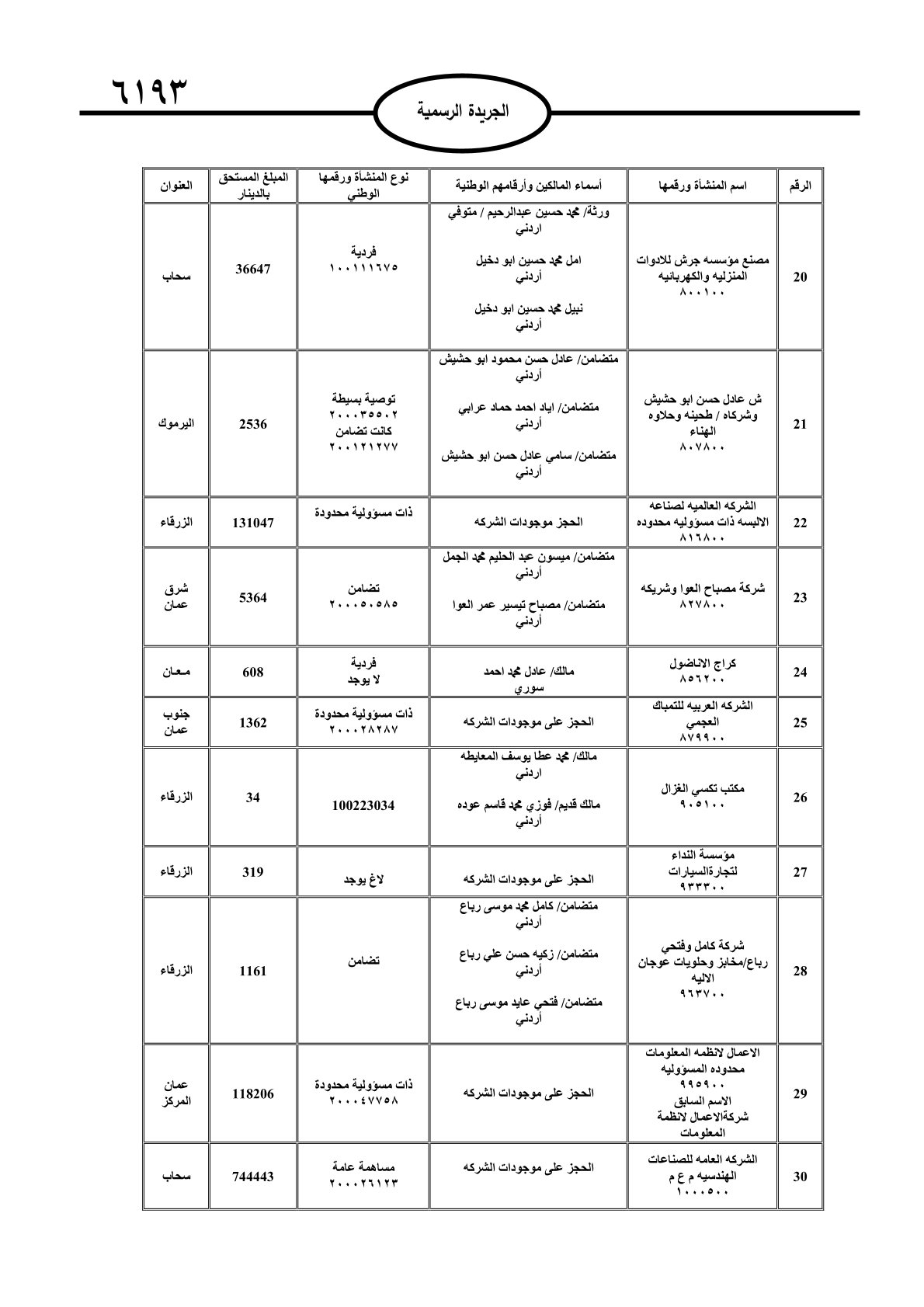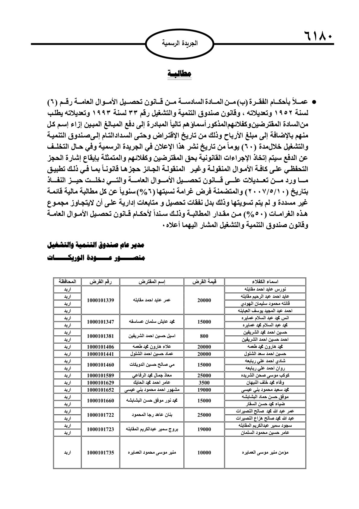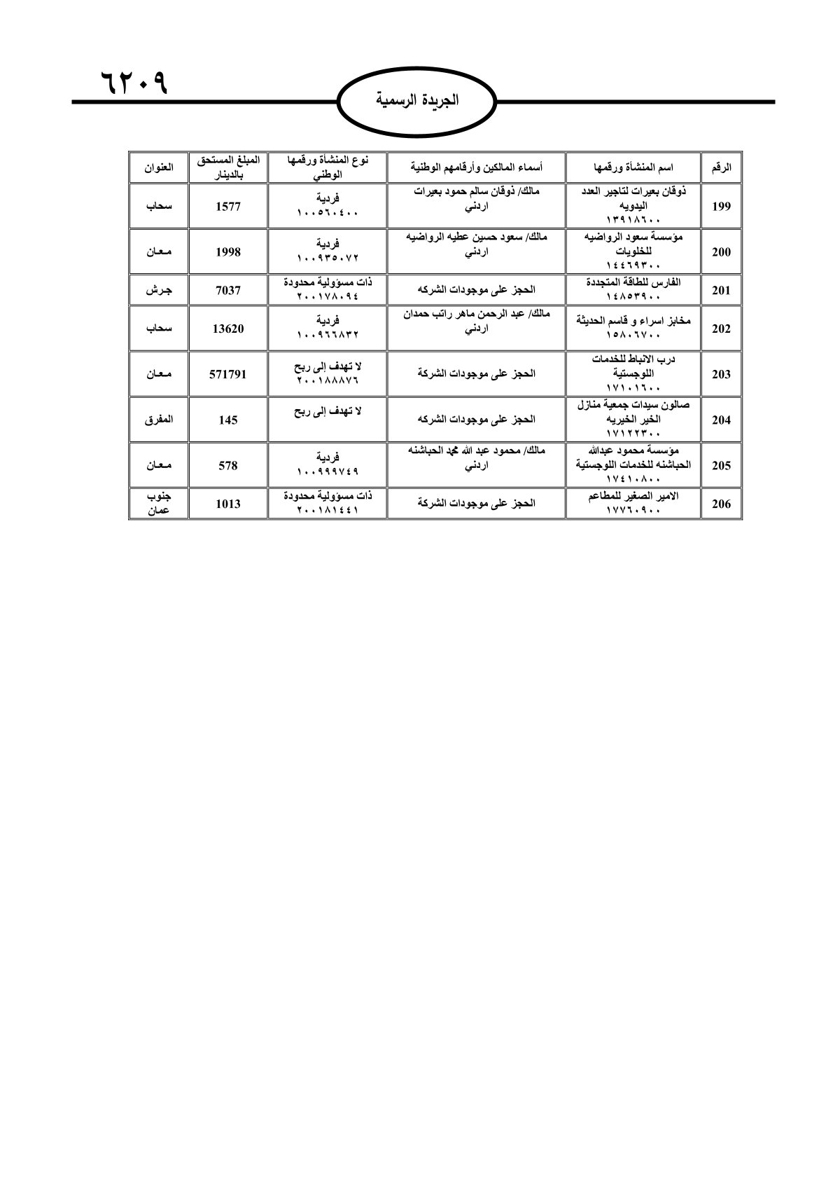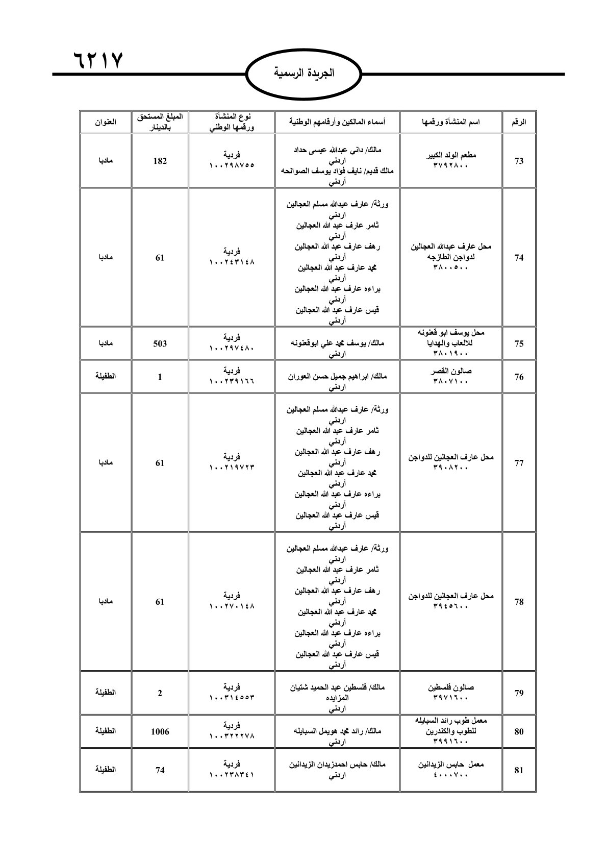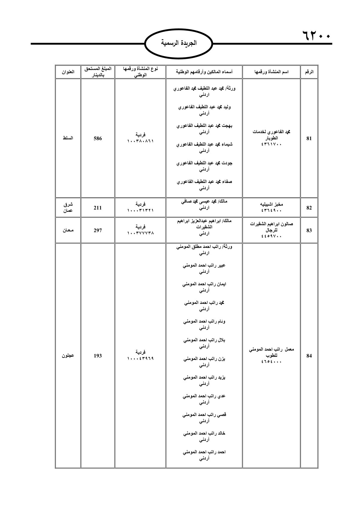 عملا بأحكام قانون تحصيل الأموال العامة، نشرت الجريدة الرسمية الصادرة اليوم الأحد قوائم مطالبات مالية بحق مئات الأردنيين.