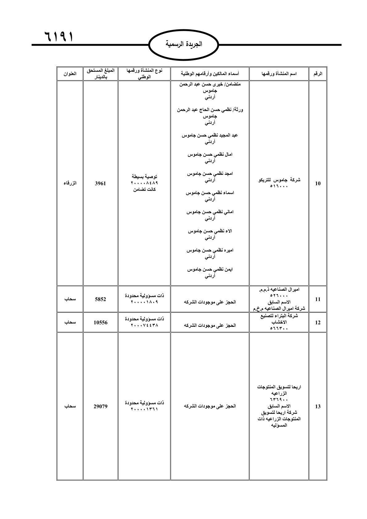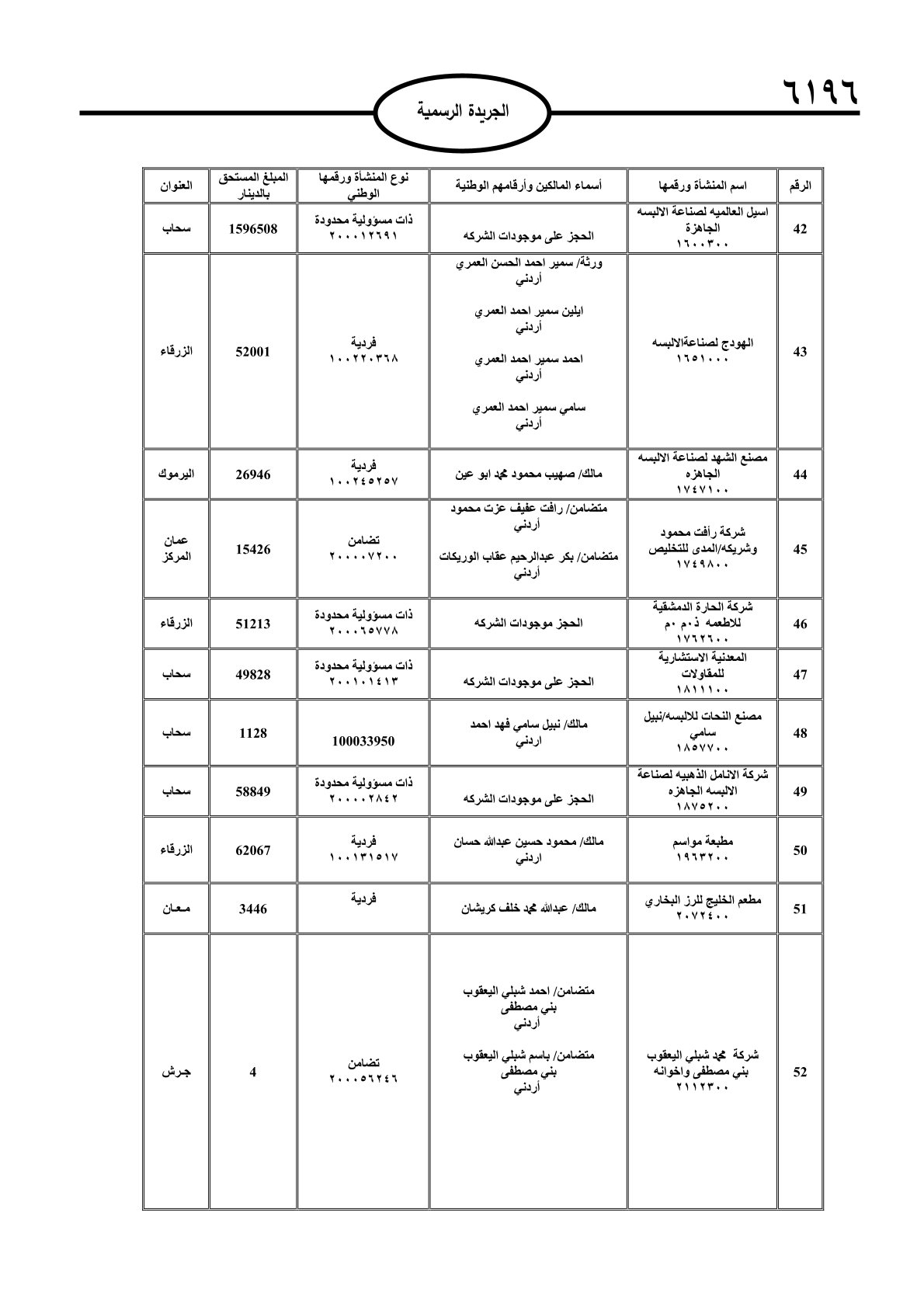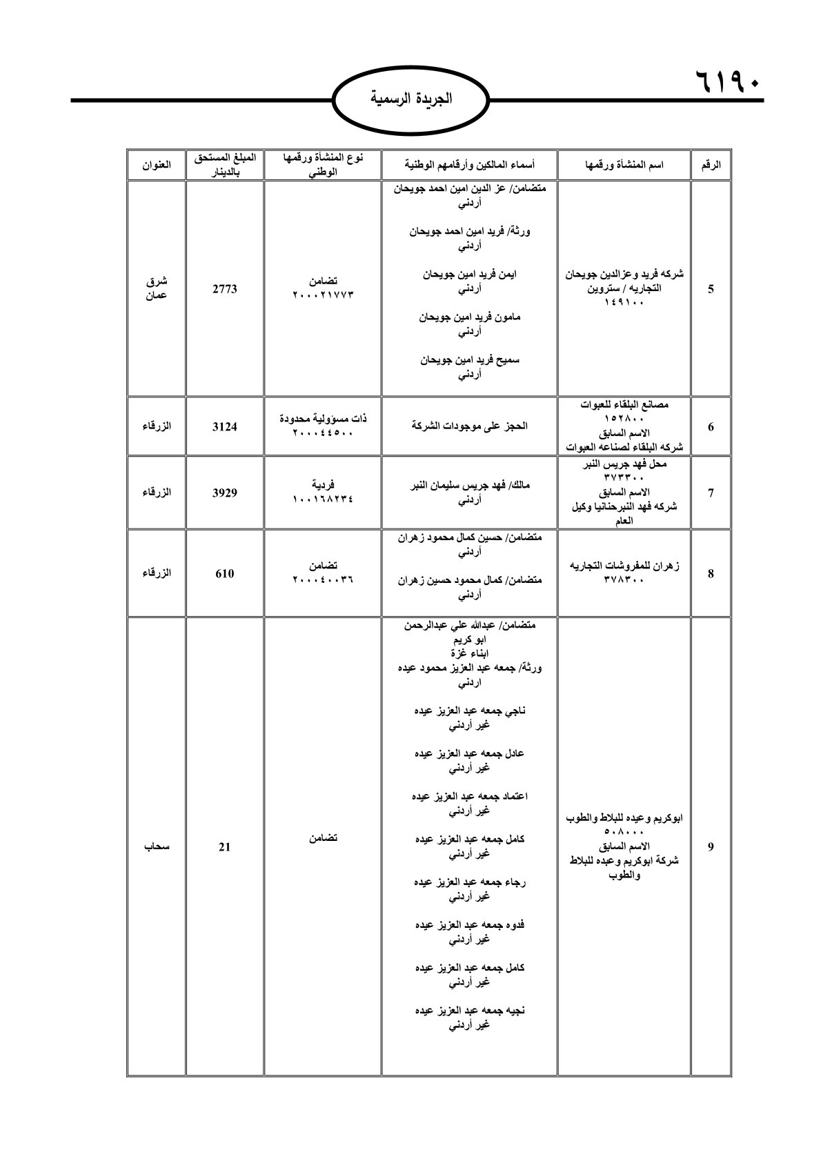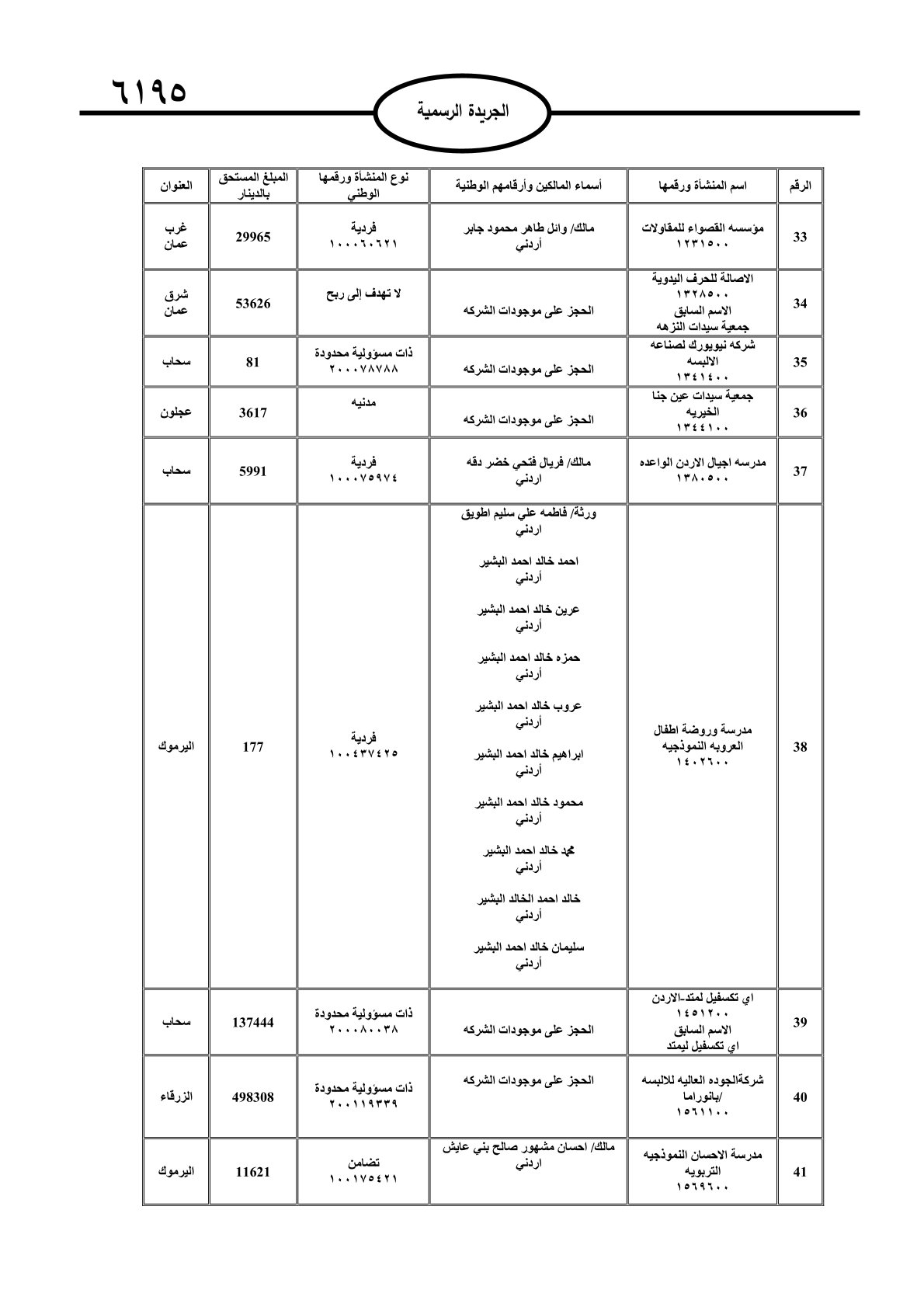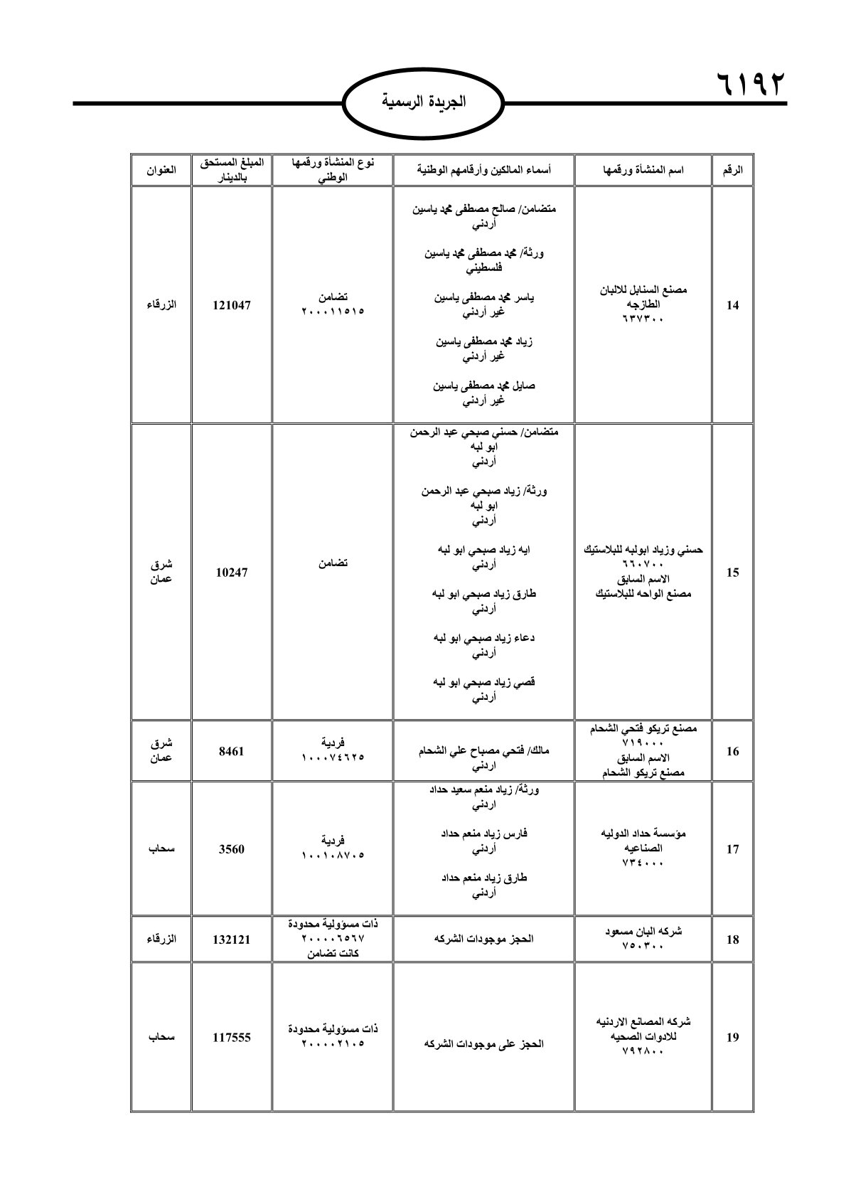 عملا بأحكام قانون تحصيل الأموال العامة، نشرت الجريدة الرسمية الصادرة اليوم الأحد قوائم مطالبات مالية بحق مئات الأردنيين.