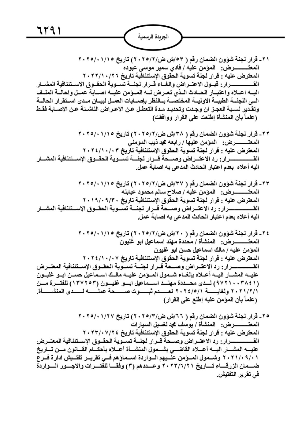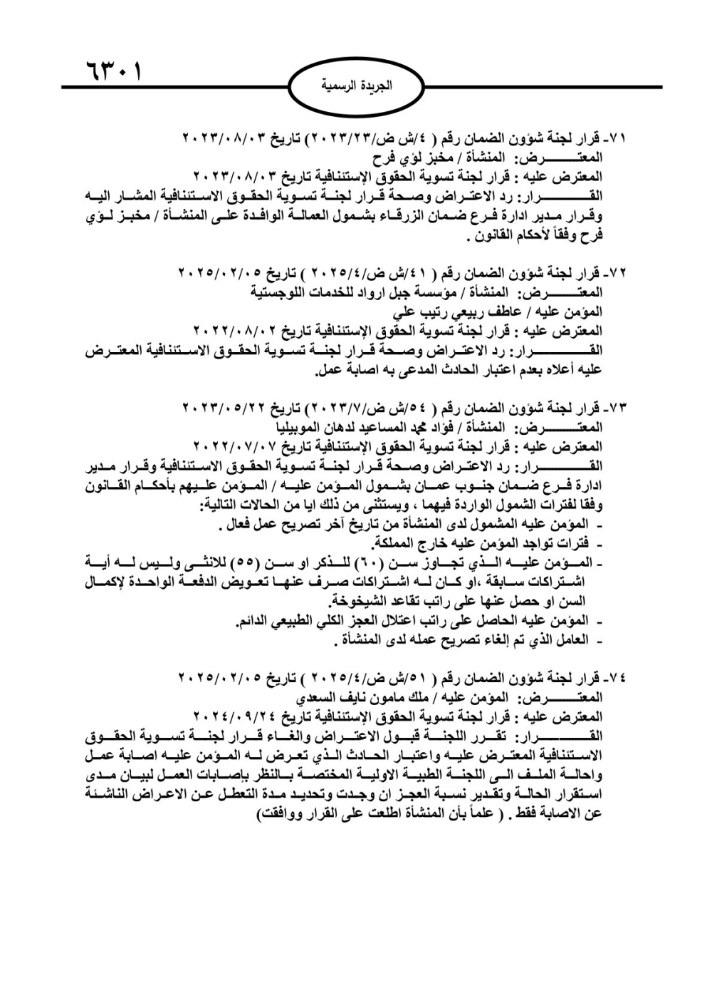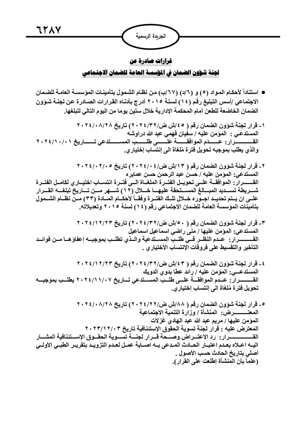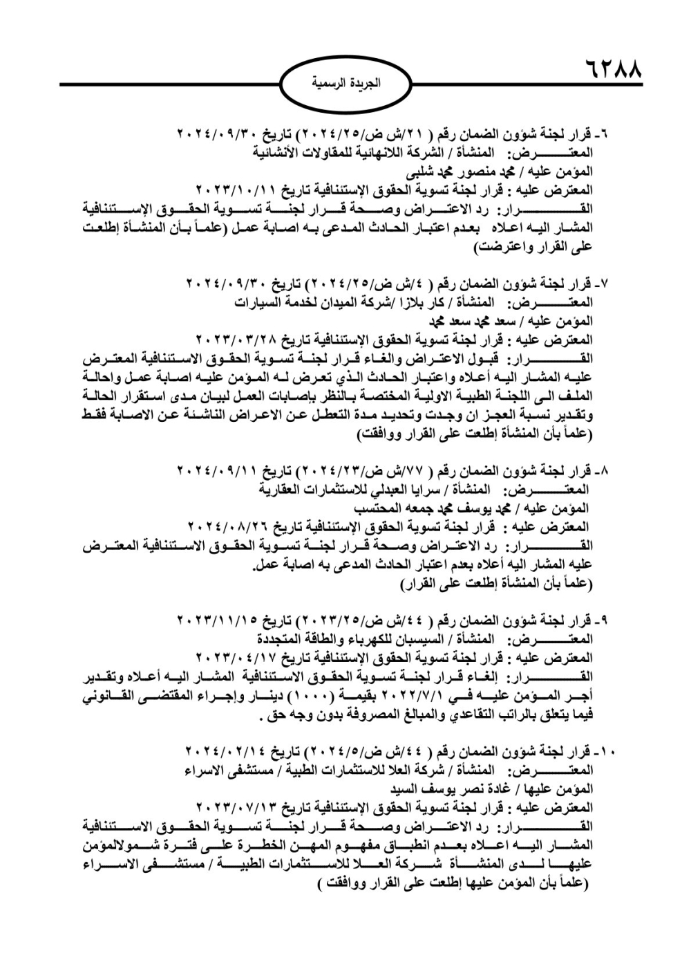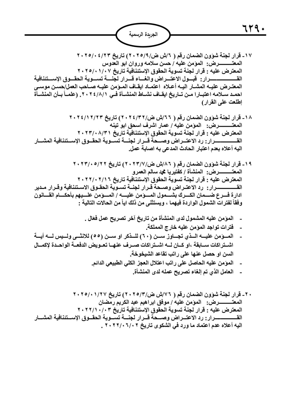نُشر في الجريدة الرسمية، قرارات واسعة صادرة عن لجنة شؤون الضمان في المؤسسة العامة للضمان الاجتماعي، وتاليا نص القرارات: