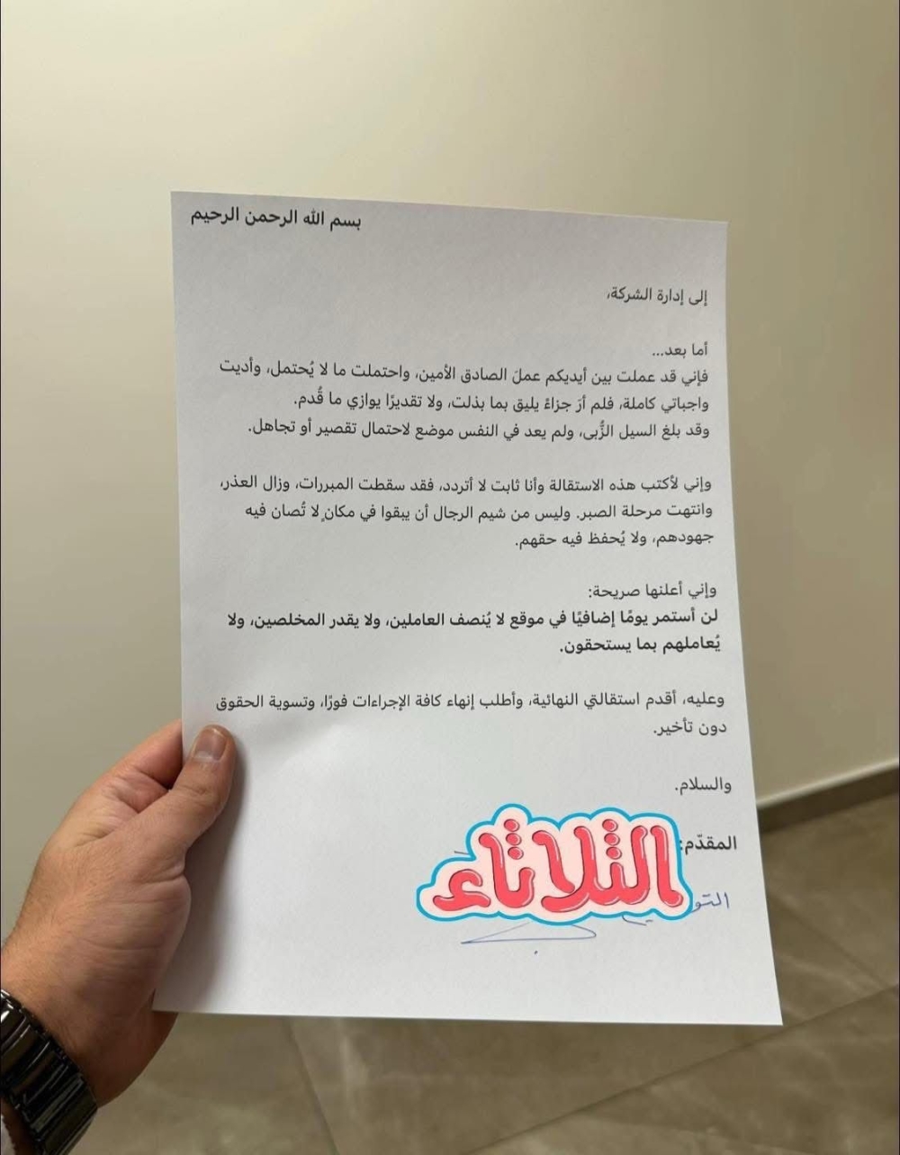 رسالة استقالة تهز مواقع التواصل .. موظف يكتب نهاية صبره