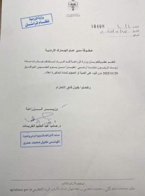 قرر وزير الزراعة، صائب الخريسات، استئناف تصدير زيت الزيتون الأردني اعتباراً من اليوم الخميس، دون فرض أي قيود على الكميات أو الأحجام، في خطوة تهدف إلى دعم المنتج الوطني وفتح الأسواق الخارجية أمامه.