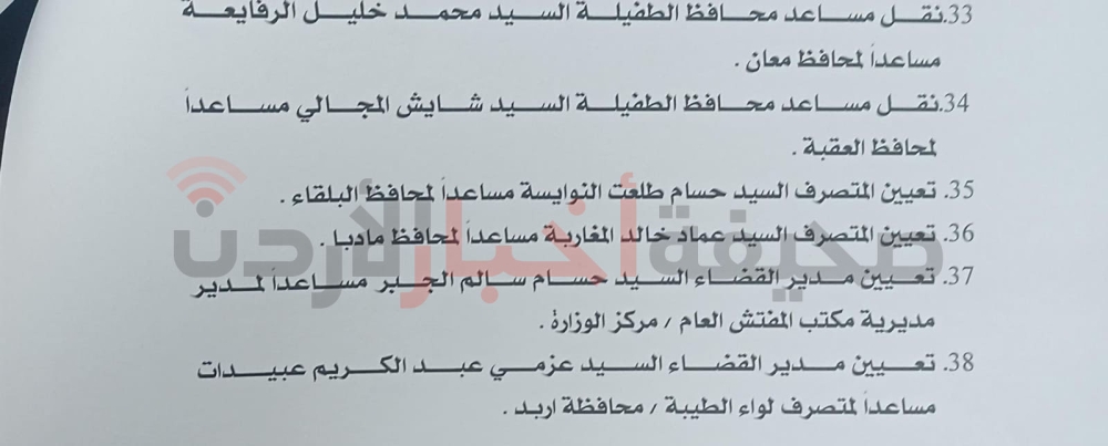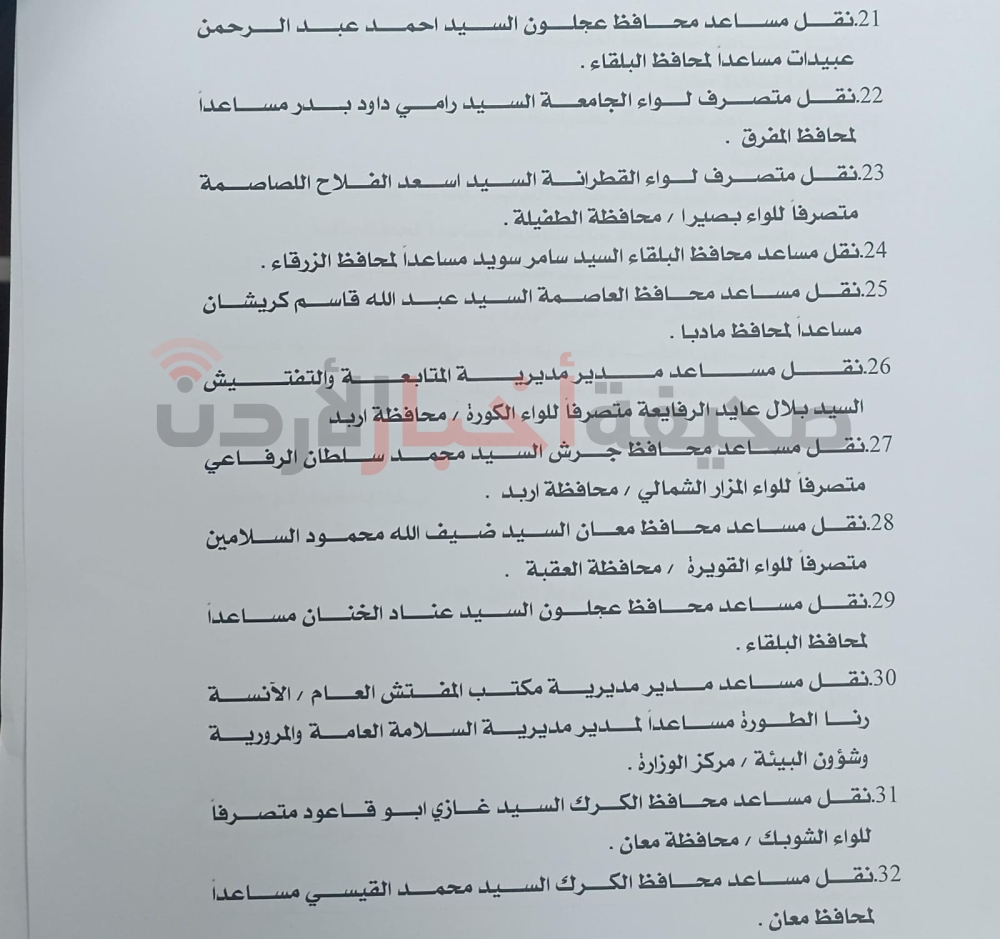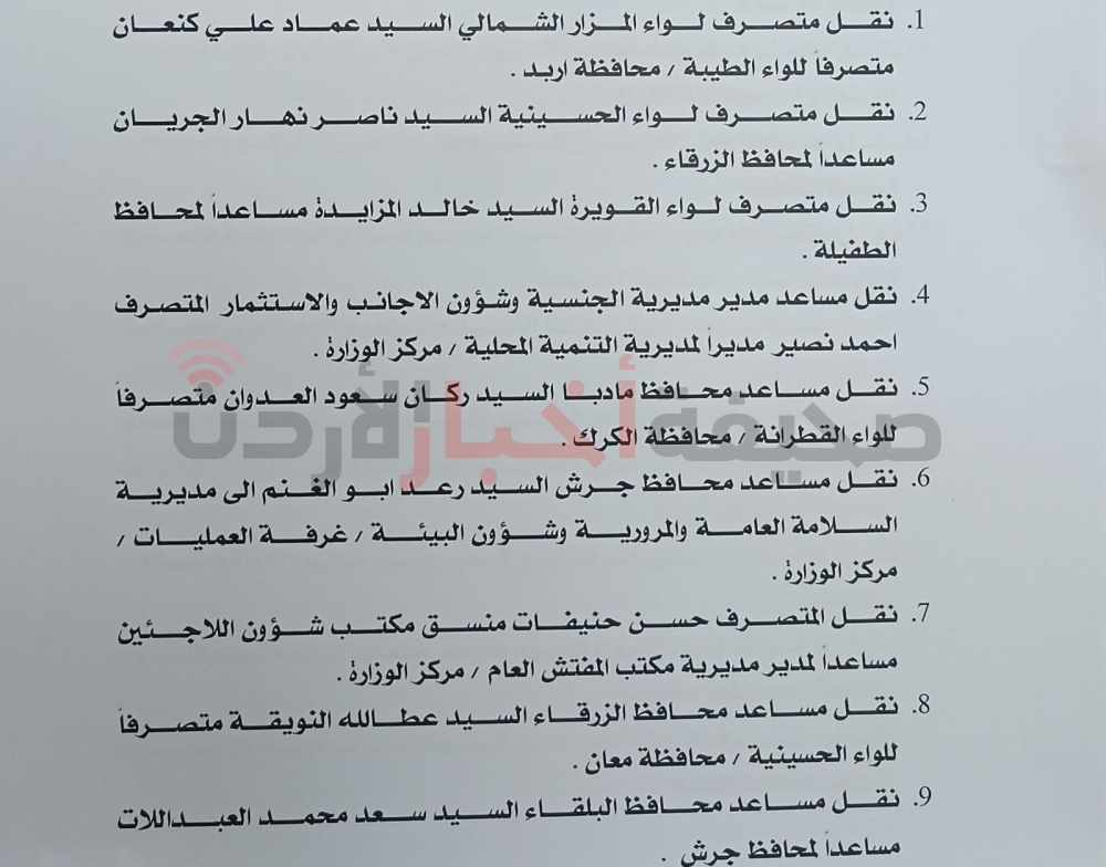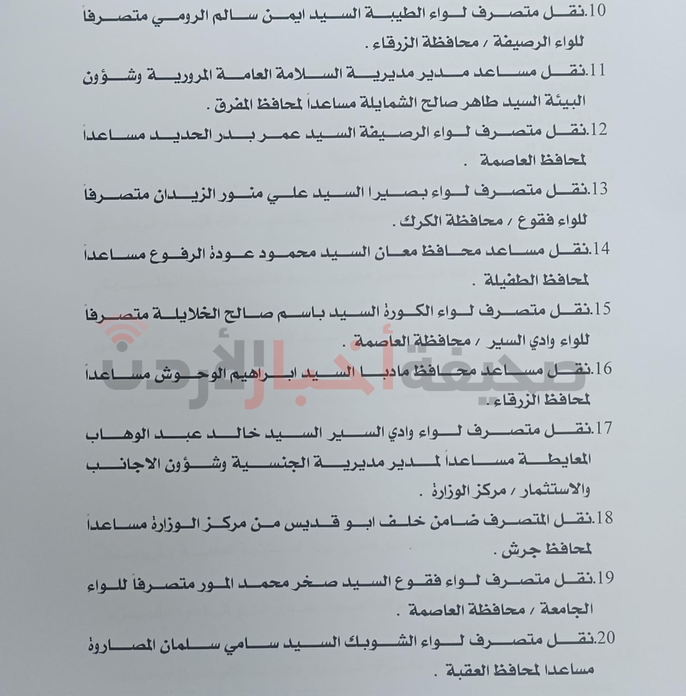 قرر وزير الداخلية مازن الفراية، إجراء تشكيلات إدارية واسعة في الوزارة، وفي الآتي: