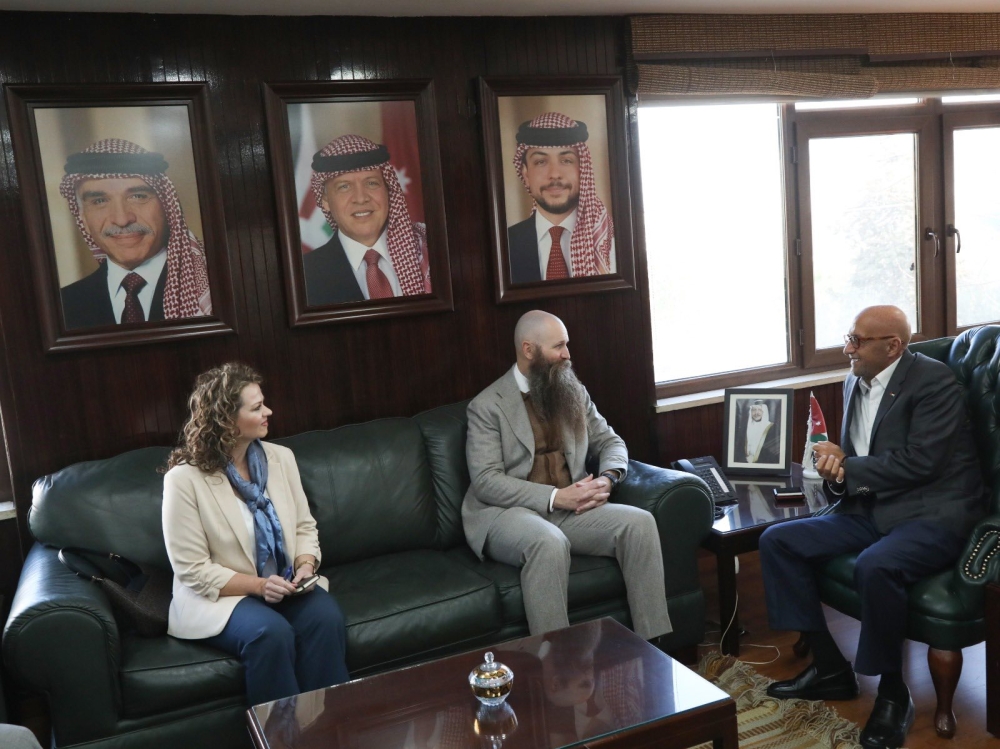 استقبل وزير المياه والري المهندس رائد أبو السعود في مكتبه بوزارة المياه والري اليوم الاحد 14 كانون اول 2025 سفير الولايات المتحدة الامريكية لدى المملكة الاردنية الهاشمية السيد جيم هولتسنايدر وتناول اللقاء التحديات المائية وابرز الجهود التي يبذلها قطاع المياه لمواجهة مختلف التحديات وتأمين المياه من خلال تنفيذ مشاريع مائية مستدامة.