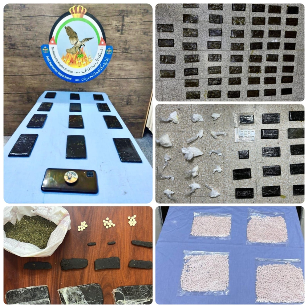 وفي إحدى القضايا في محافظة مأدبا وبعد جمع المعلومات حول خمسة أشخاص يقومون ببيع مادة الكوكايين المخدرة، جرى تحديد هوياتهم وأماكن وجودهم ومداهمتهم وإلقاء القبض عليهم وضبط بحوزتهم 1 كغم من مادة الكوكايين، وضُبط 12 كف حشيش جنوب العاصمة بعد مداهمة أحد تجّار المخدرات هناك، إضافة إلى مداهمة ثلاثة تجّار للمخدرات شرق العاصمة وضُبط 14 ألف حبة مخدرة بحوزتهم، وضبط كذلك 24 كف حشيش شمال العاصمة بحوزة تاجر للمخدرات بعد مداهمته .