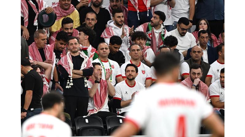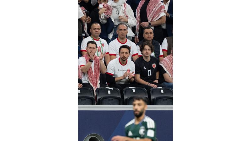 ساند سمو الأمير الحسين بن عبد الله الثاني، ولي العهد، وسمو الأمير هاشم بن عبدالله الثاني النشامى مع الجماهير الأردنية على مدرجات ستاد البيت في مباراة نصف نهائي كأس العرب المقام حاليا في العاصمة القطرية الدوحة أمام نظيره السعودي.