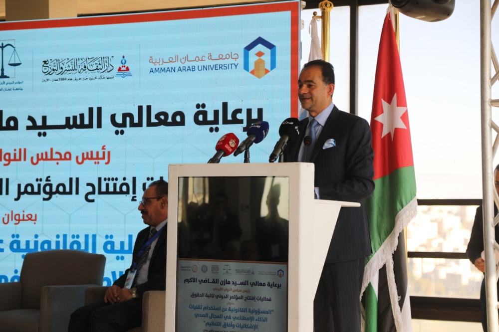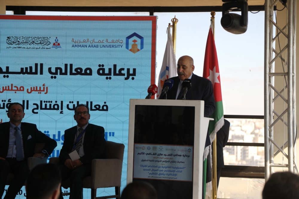 رعى معالي مازن القاضي، رئيس مجلس النواب الأردني أعمال مؤتمر «المسؤولية القانونية عن استخدام تقنيات الذكاء الاصطناعي في مجال الرعاية الصحية: الإشكاليات وآفاق التنظيم»، الذي نظمته جامعة عمان العربية، بحضور نقيب الأطباء، ونخبة من الأكاديميين والباحثين المتخصصين من داخل المملكة وخارجها.