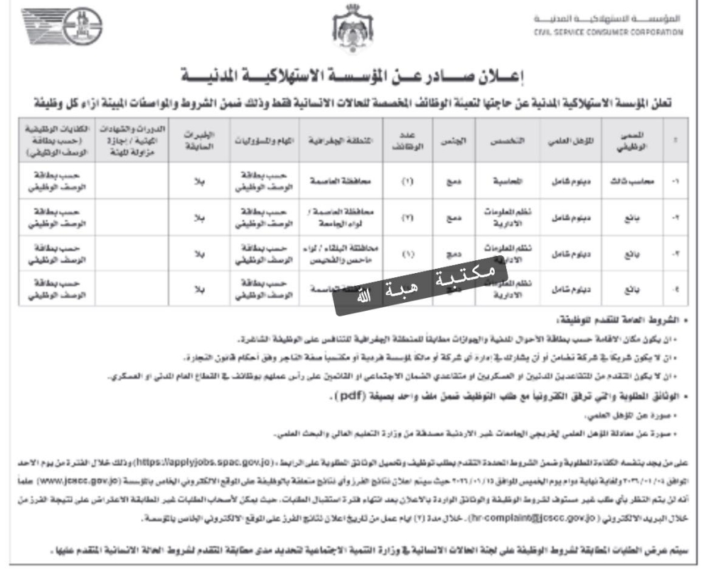 أعلنت جهات رسمية عن توفر وظائف شاغرة في عدد من المؤسسات الحكومية، تشمل: