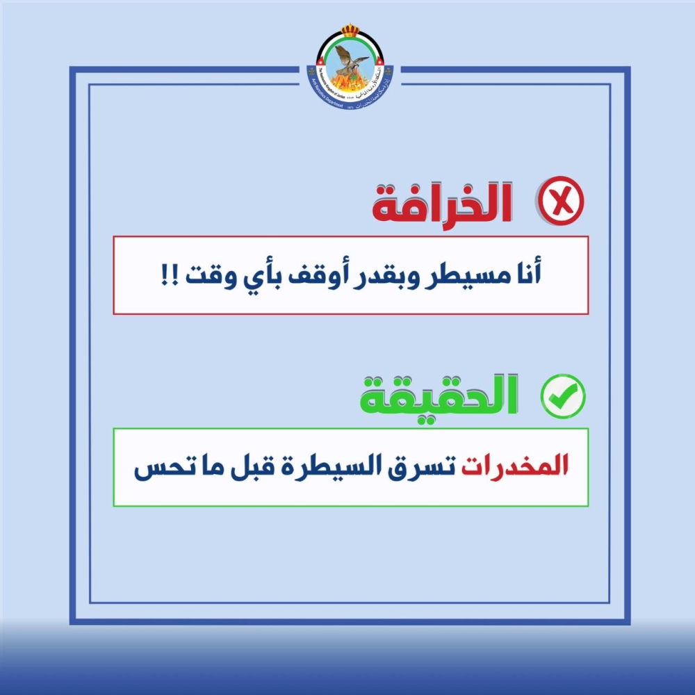 وشددت الإدارة في حملتها التوعوية على أن كل خرافة مرتبطة بالمخدرات تحمل وراءها خسارة، وأن مجرد تجربة واحدة قد تكون بداية الانحدار أو النهاية المأساوية.