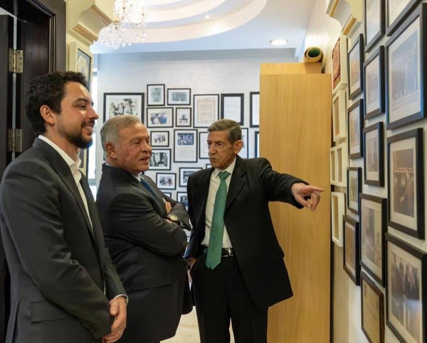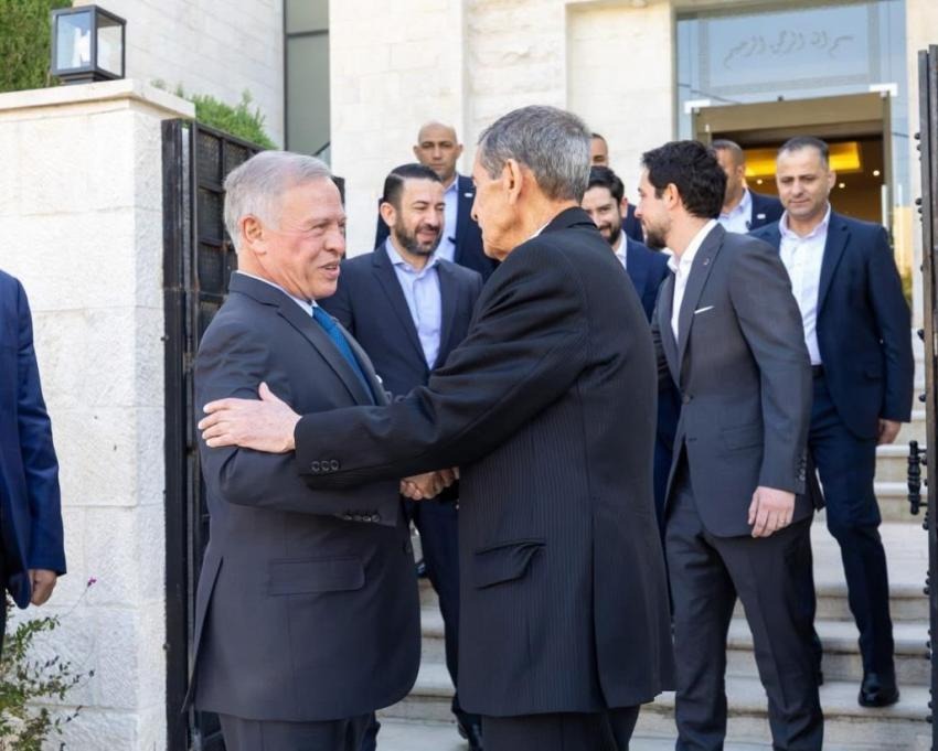 زار جلالة الملك عبدالله الثاني بن الحسين، يرافقه سمو الأمير الحسين بن عبدالله الثاني، ولي العهد، أمس السبت، رئيس الديوان الملكي الأسبق يوسف الدلابيح في دارته.