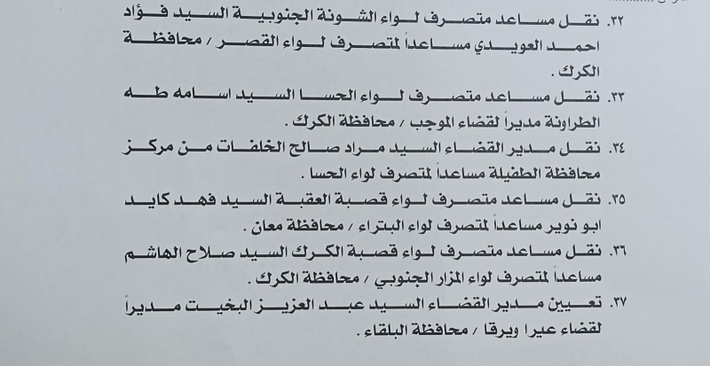أجرى وزير الداخلية مازن الفراية، اليوم الاربعاء، تشكيلات إدارية واسعة شملت متصرفين ومساعدي متصرفين ومدراء أقضية.