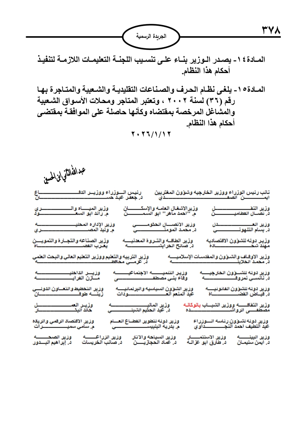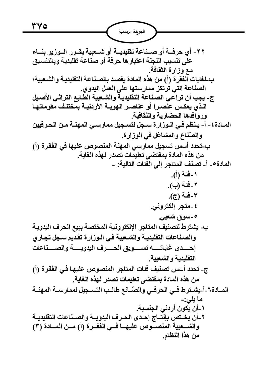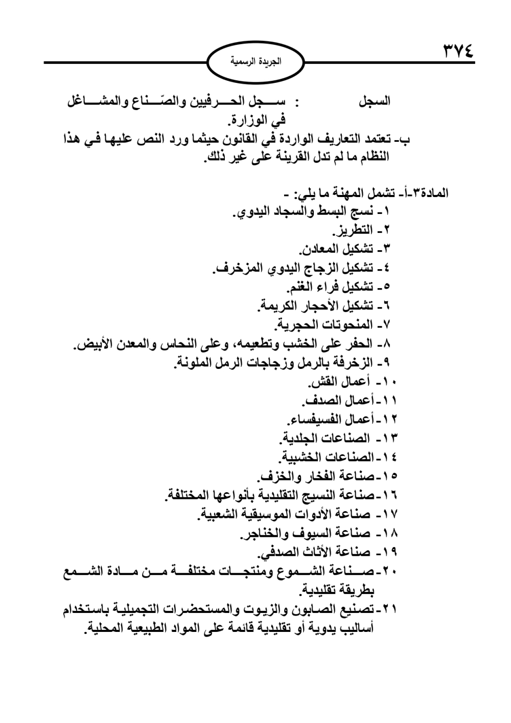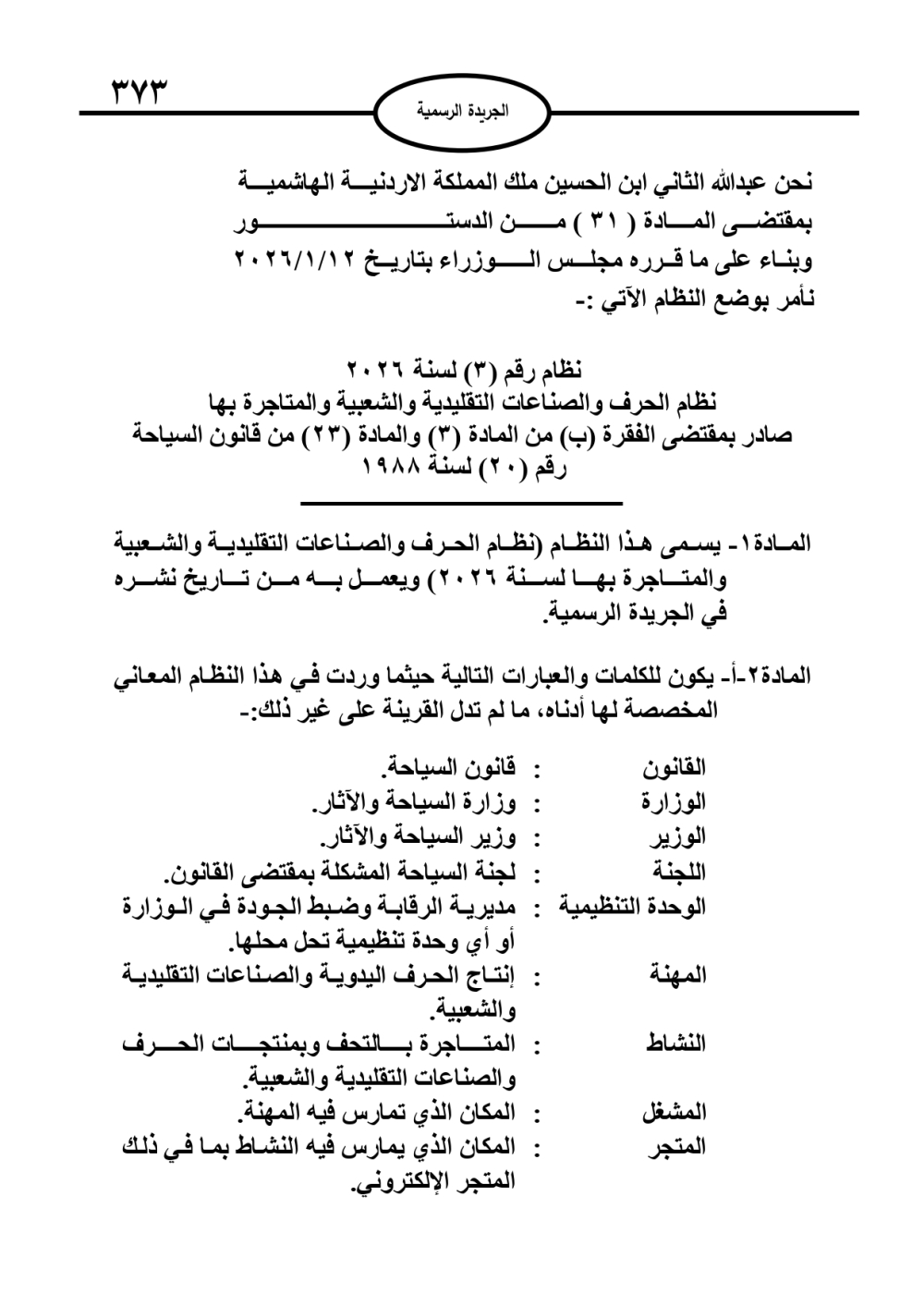 نشر في الجريدة الرسمية، الخميس، نظام الحرف والصناعات التقليدية والشعبية والمتاجرة بها لسنة 2026.