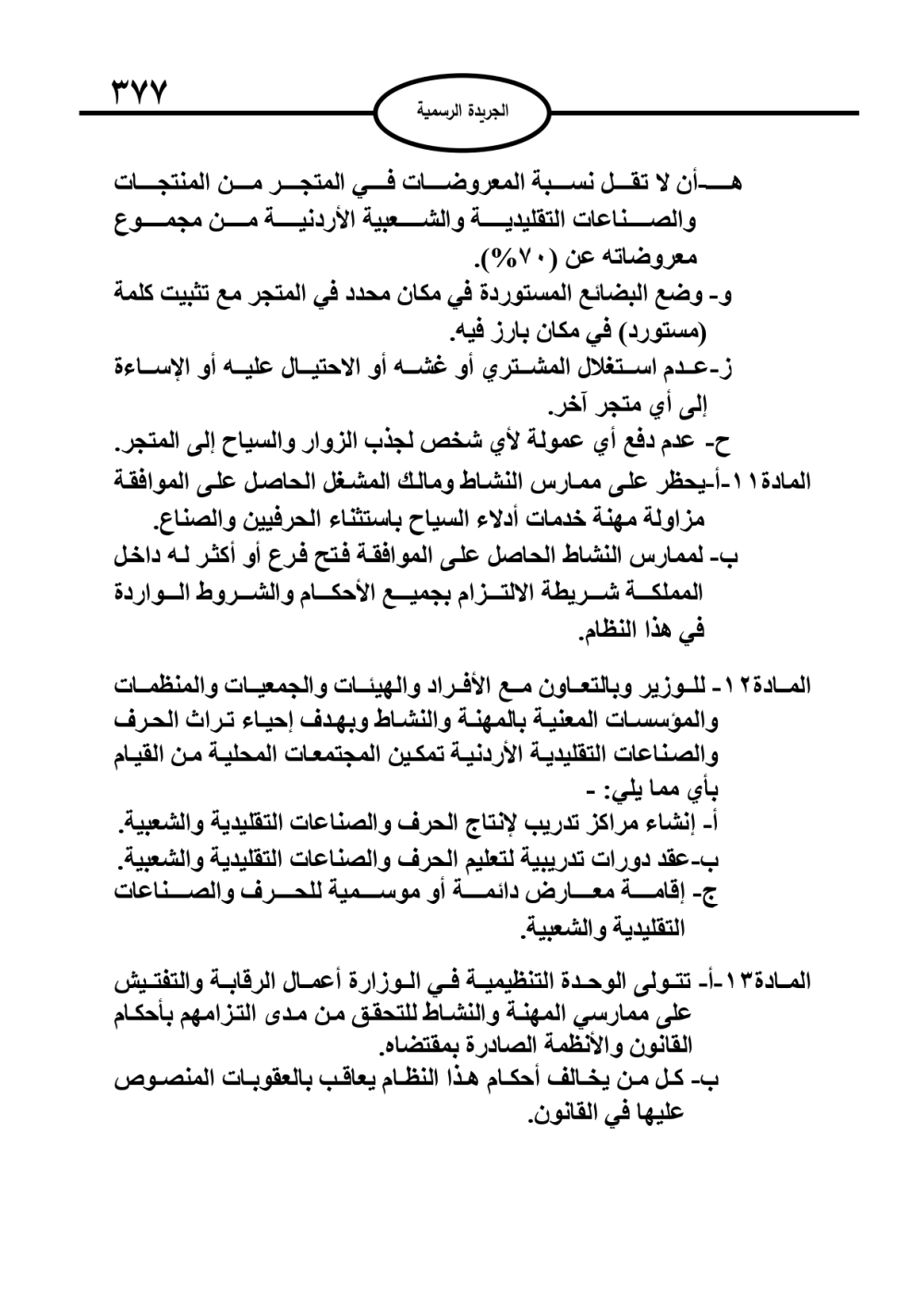 نظام الحرف والصناعات التقليدية والشعبية والمتاجرة بها