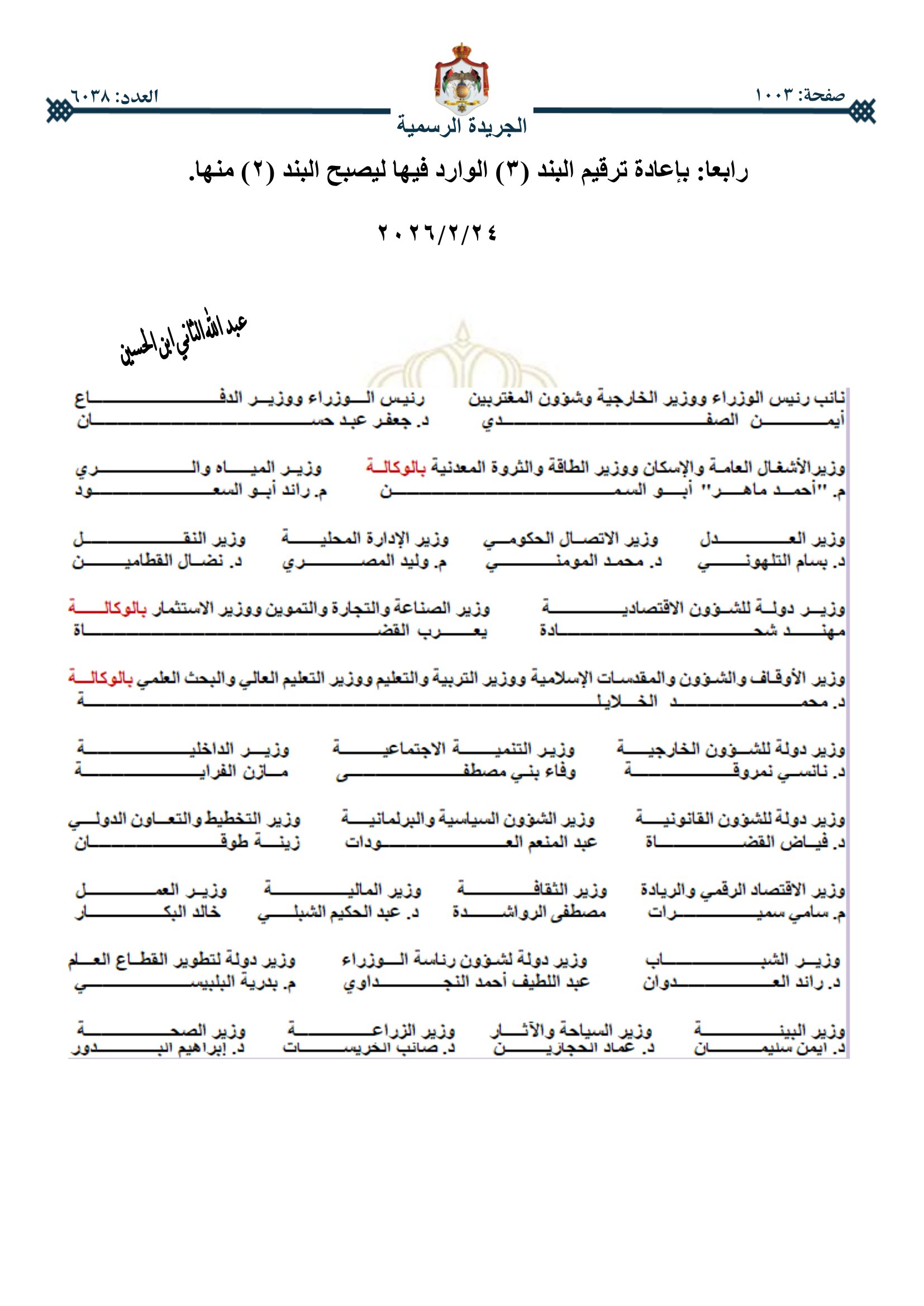 صدر في عدد الجريدة الرسمية اليوم الخميس النظام المعدل لنظام كادر ضباط القوات المسلحة الأردنية، والنظام المعدل لنظام كادر أفراد القوات المسلحة الأردنية.