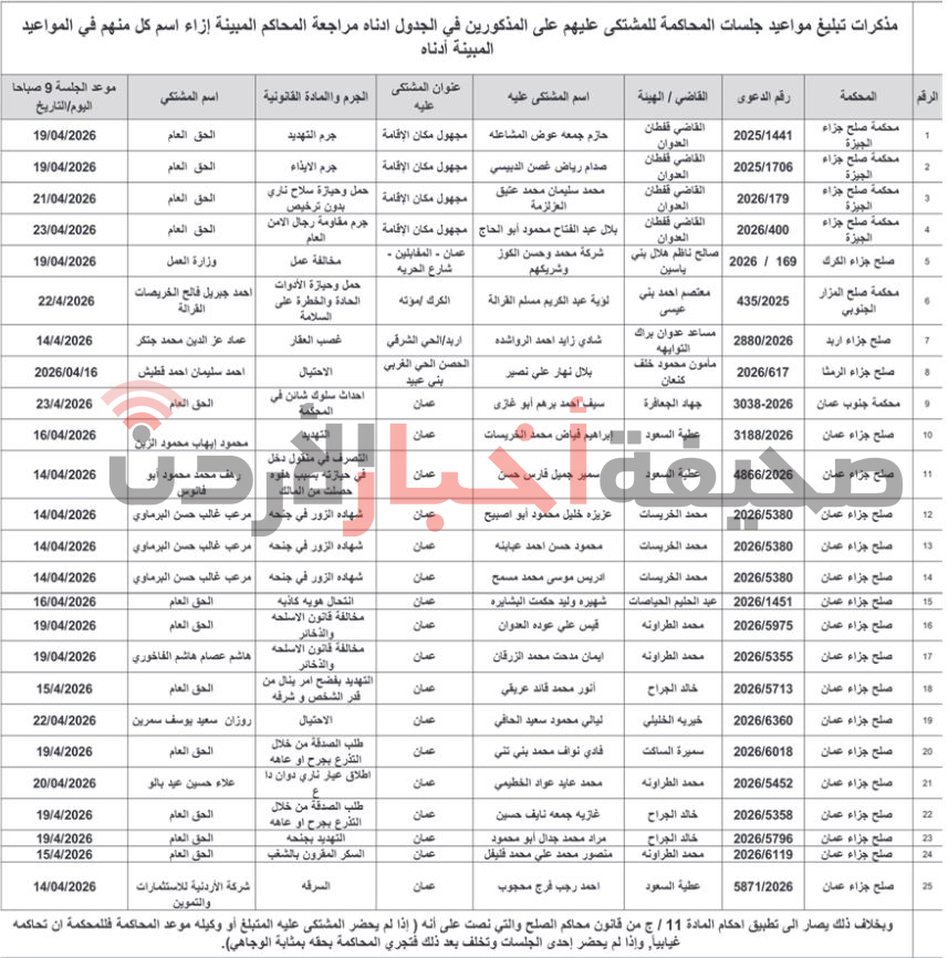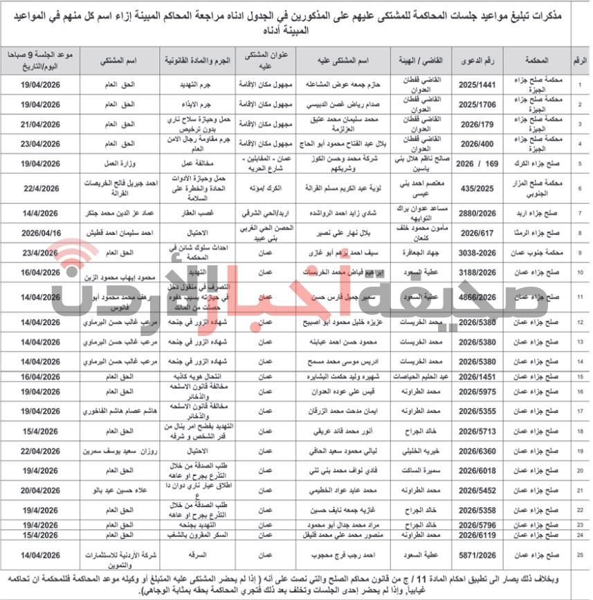 إمهال أردنيين لتسليم أنفسهم ومذكرات تبليغ لآخرين (أسماء)
