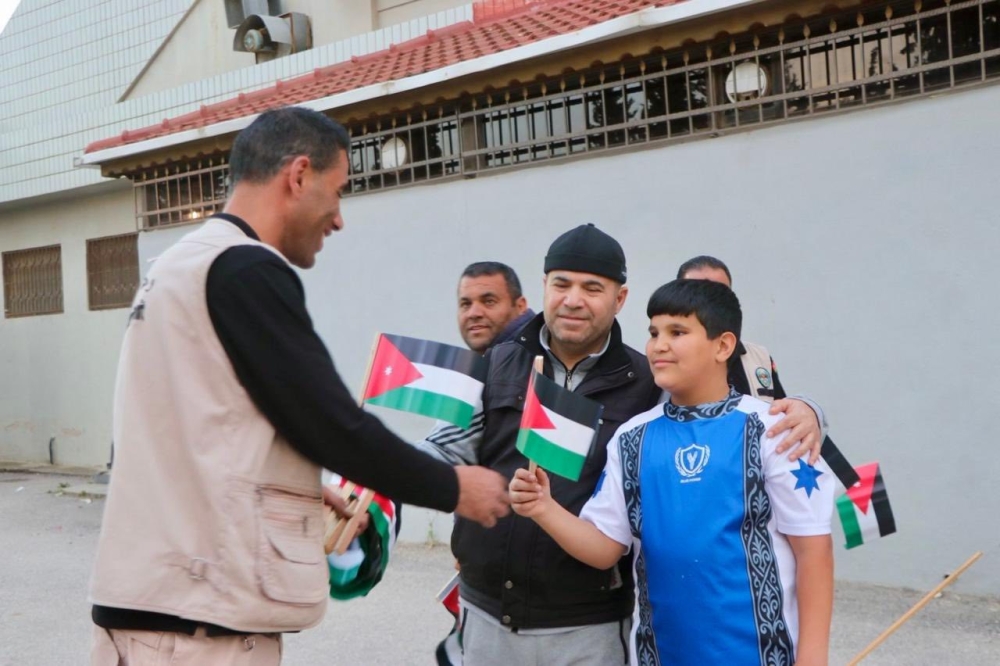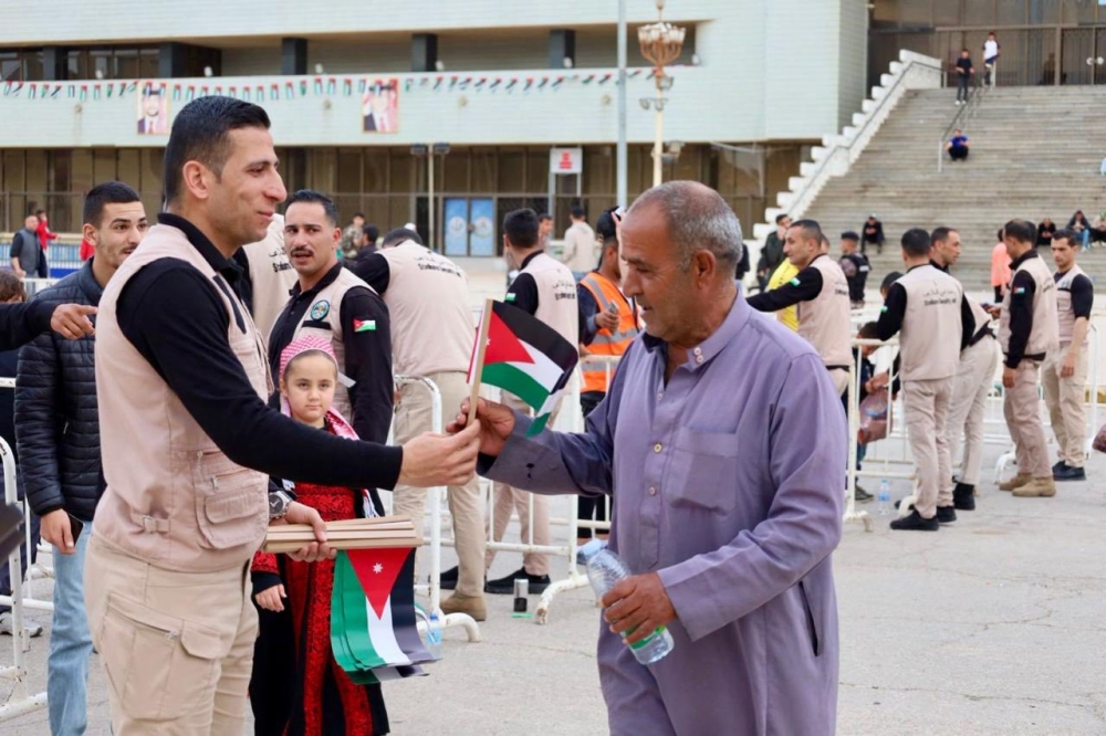 نشامى أمن الملاعب يوزعون الأعلام احتفالاً بيوم العلم في مباراة الحسين والرمثا
