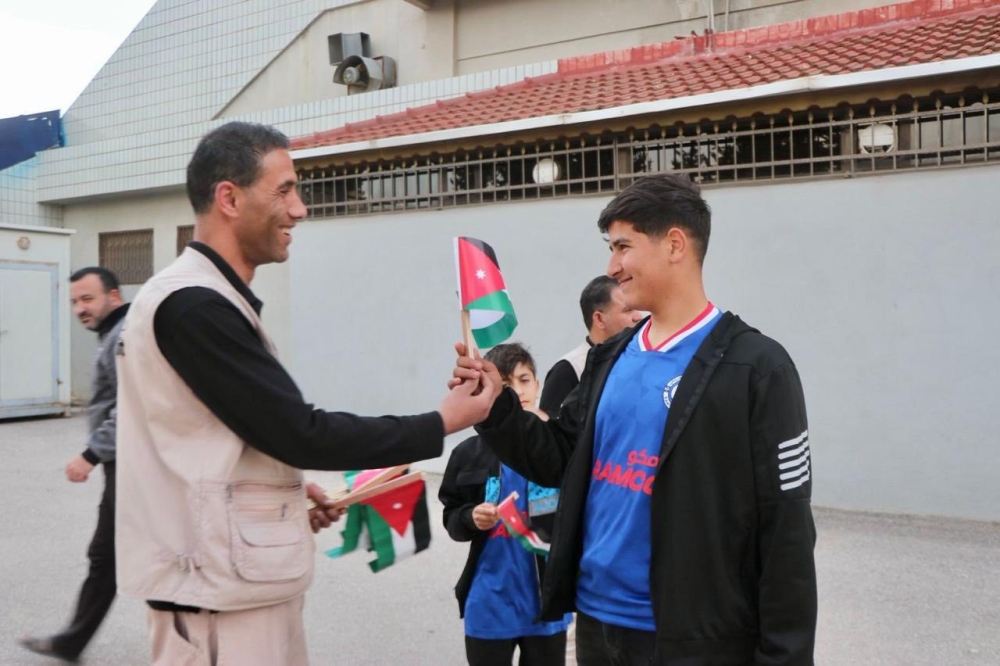 نشامى وحدة أمن الملاعب وقبيل انطلاق مجريات مباراة دوري المحترفين الأردني لكرة القدم بين فريقي (الحسين اربد و الرمثا) ، يقومون بتوزيع الأعلام الأردنية على جماهير الفريقين وذلك ضمن احتفالات المملكة "بيوم العلم" ، حيث عكست المبادرة روح الولاء والانتماء ومعاني الفخر بالوطن .