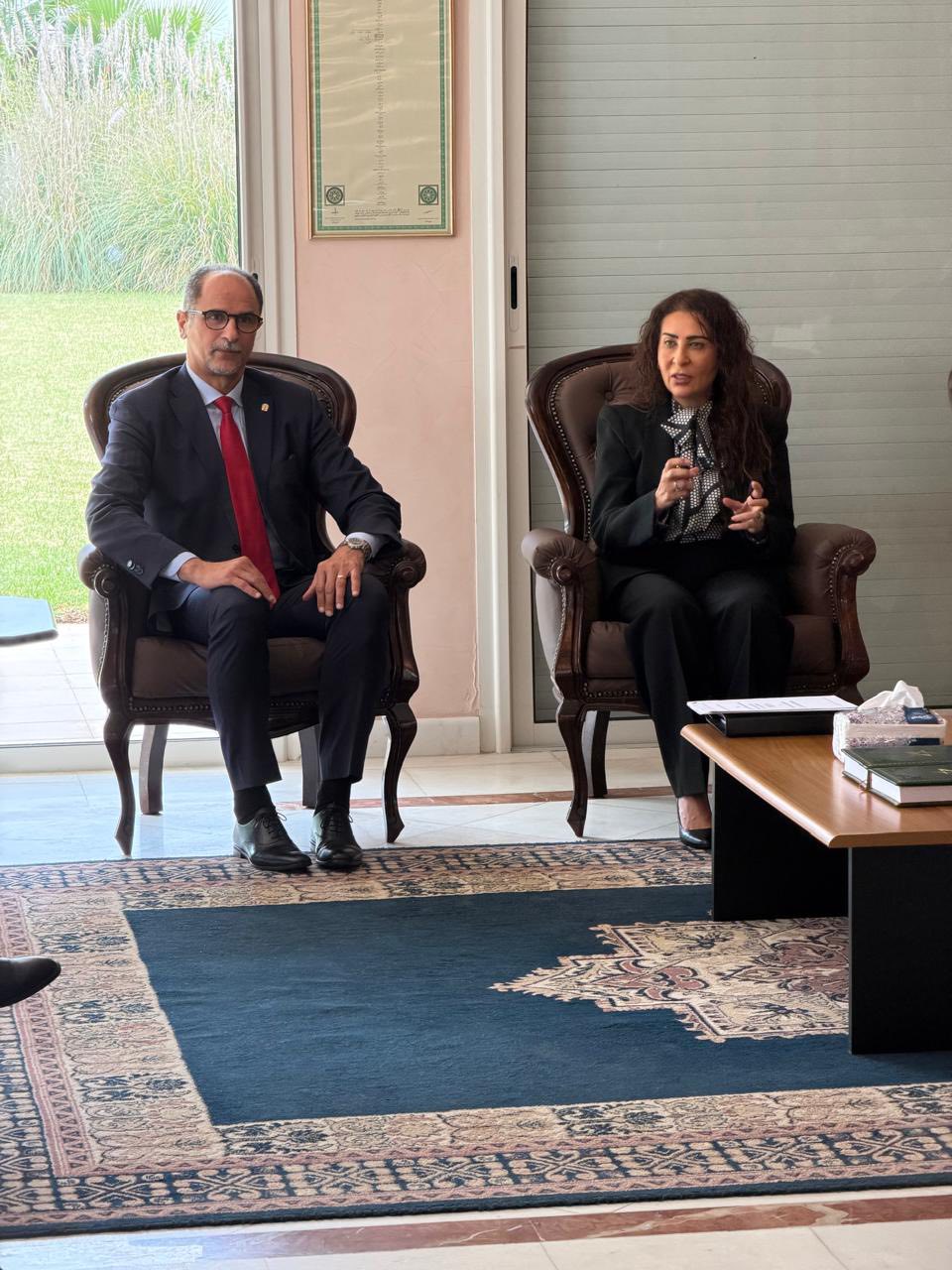 وخلال هذا اللقاء، أكدت معالي السفيرة عمق العلاقات الأخوية التي تجمع المملكة الأردنية الهاشمية والمملكة المغربية، مشددة على أهمية تعزيز التواصل مع المؤسسات التعليمية والبحثية المغربية، بما يسهم في تبادل الخبرات وتطوير المعرفة في مختلف المجالات، لا سيما في ميدان الدراسات السياسية والدولية.