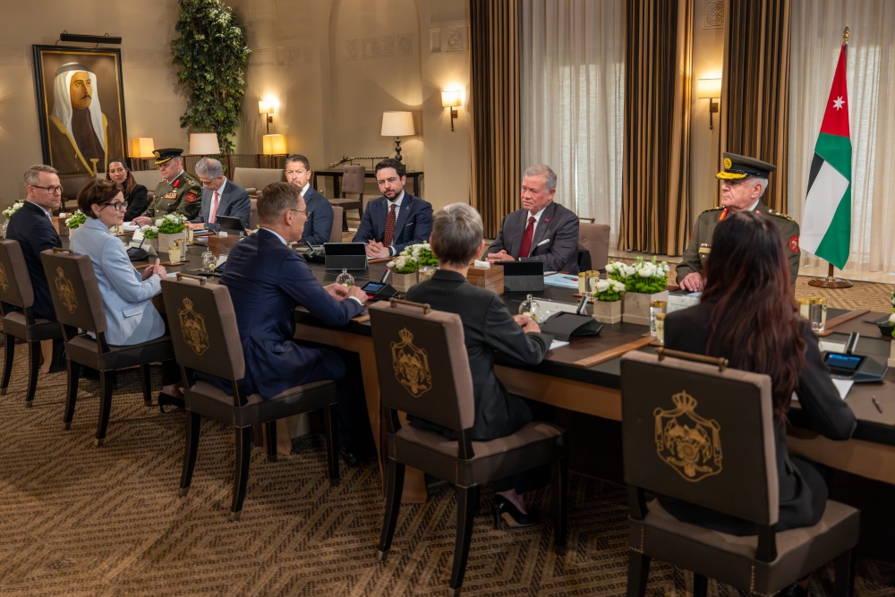 وحضر المباحثات رئيس هيئة الأركان المشتركة اللواء الركن يوسف أحمد الحنيطي، ومدير مكتب جلالة الملك، المهندس علاء البطاينة، ووزير الاقتصاد الرقمي والريادة المهندس سامي سميرات، رئيس بعثة الشرف المرافقة للضيف، والسفير الأردني غير المقيم لدى فنلندا فايز خوري، وسفيرة فنلندا غير المقيمة في الأردن آني ميسكانين.