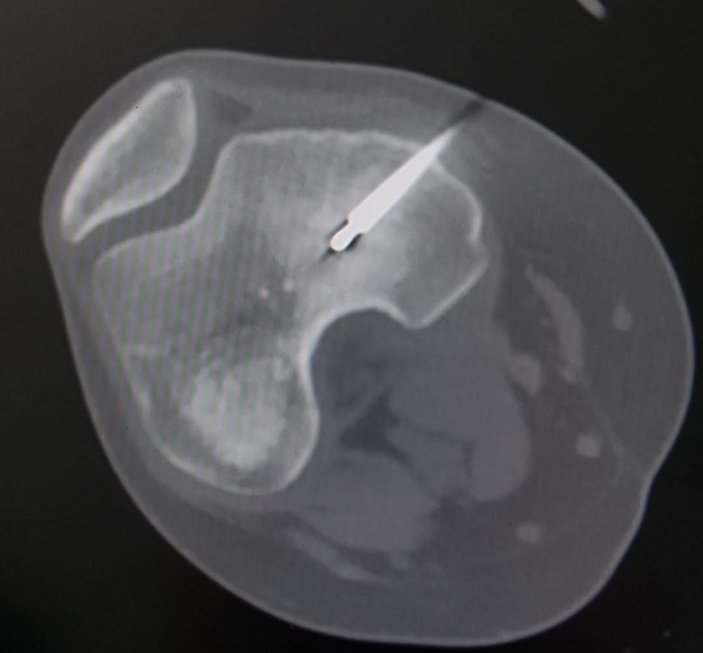 اجرى الكادر الطبي في مستشفى الأميرة بسمة عملية نوعية دقيقة لعلاج ورم عظمي حميد من نوع (Osteoid Osteoma) باستخدام تقنية الكي بالتردد الحراري (Radiofrequency Ablation) الموجهة بالأشعة المقطعية.