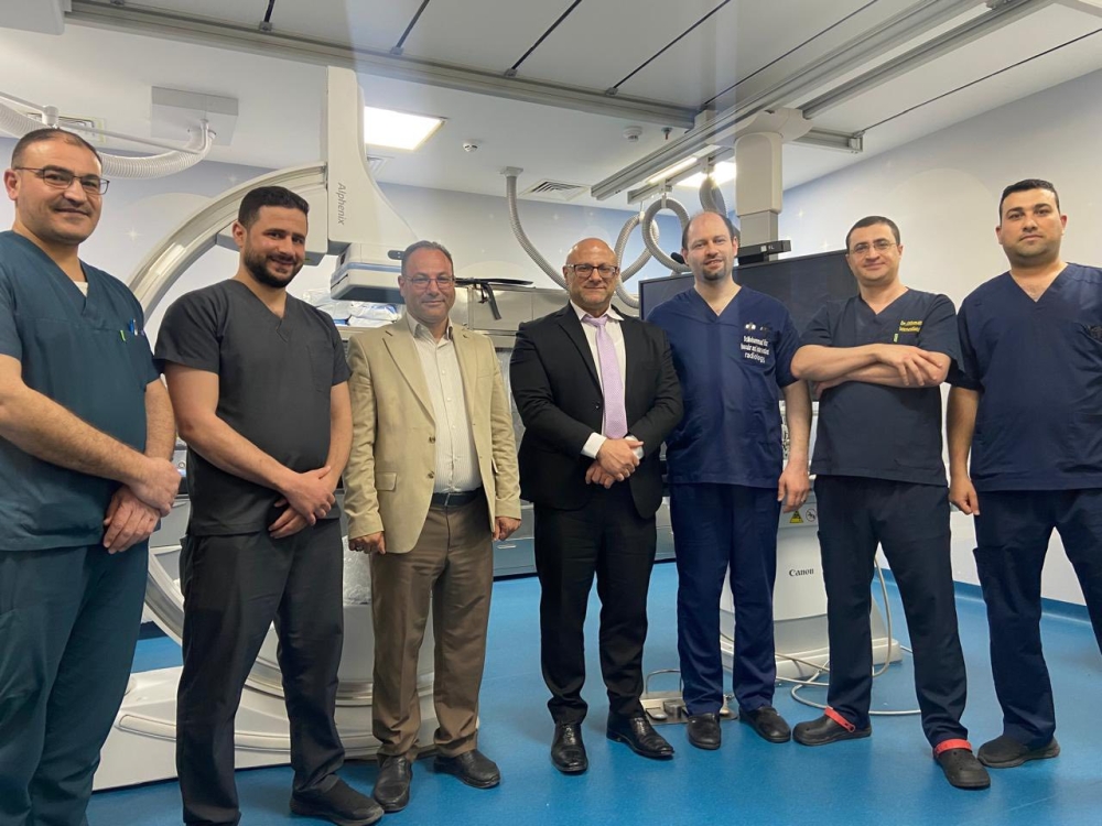 وتم إجراء هذا التدخل بنجاح من قبل الدكتور محمد نصر نزال والدكتور عثمان أبو قران أخصائيي الأشعة التداخلية وقسطرة الأوعية الدموية وبإشراف ومتابعة الدكتور عمر سميرات (أخصائي عظام الأطفال).