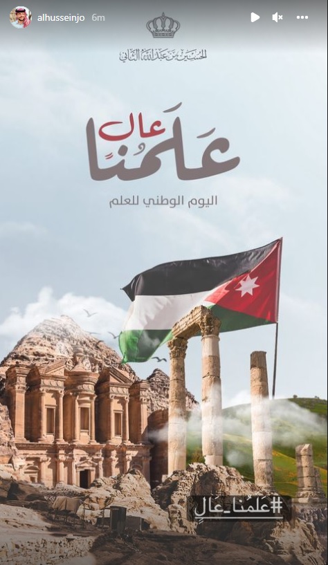 نشر نائب جلالة الملك الأمير الحسين بن عبدالله ولي العهد، اليوم السبت صورة احتفالا بيوم العلم الأردني والذي يصادف اليوم.