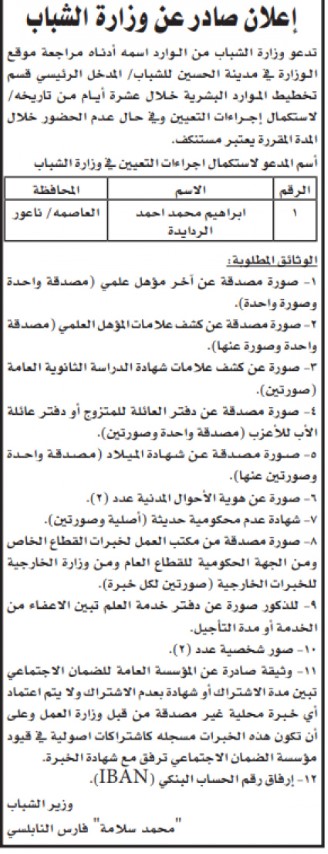 كما دعت وزارات ومؤسسات حكومية أخرى مرشحين للمقابلة الشخصية لغاية المقابلة واستكمال التعيين.